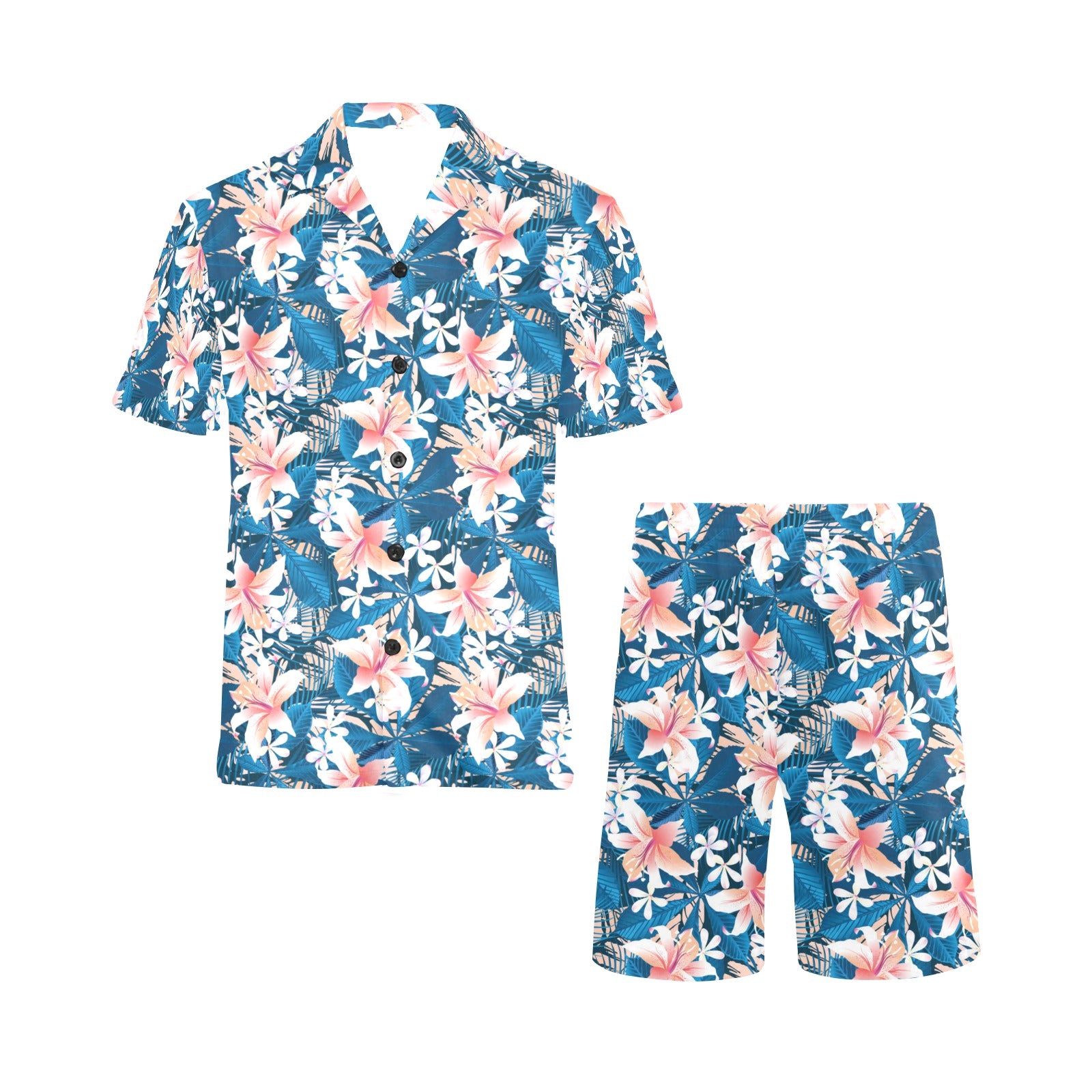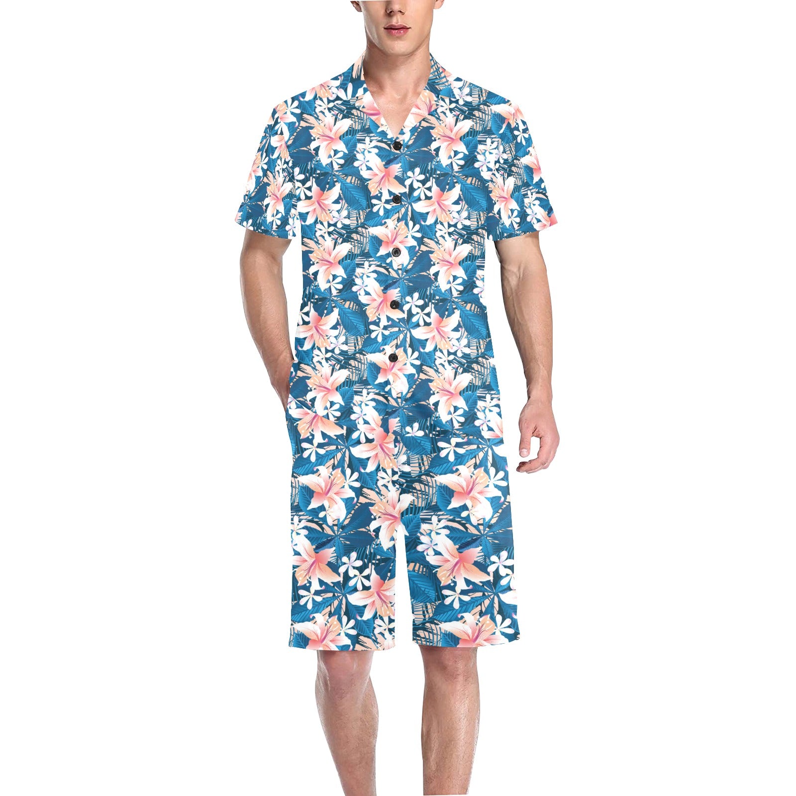 Hibiscus Pattern Print Design 02 Men's V-Neck Short Pajama Set