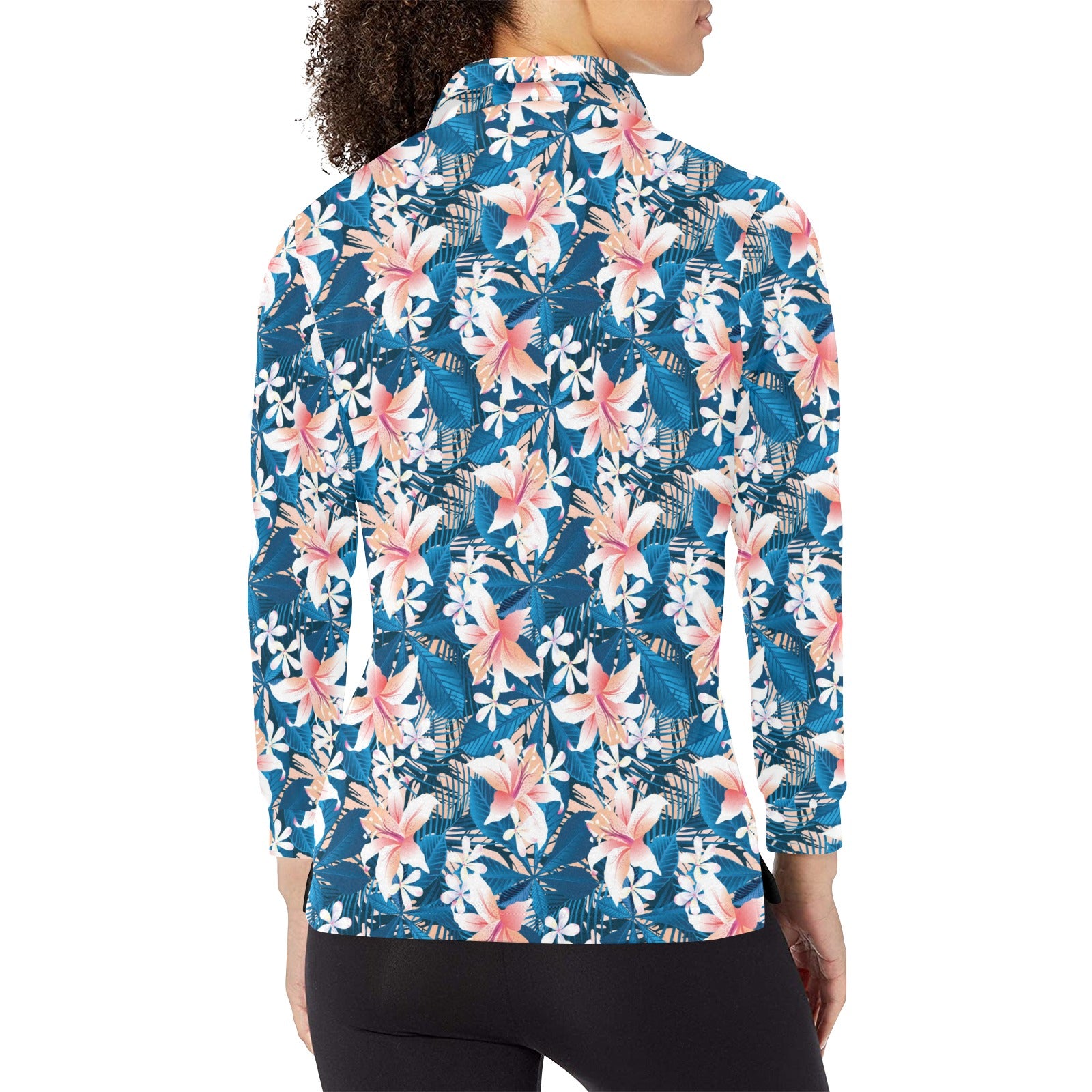 Hibiscus Pattern Print Design 02 Women's Long Sleeve Polo Shirt