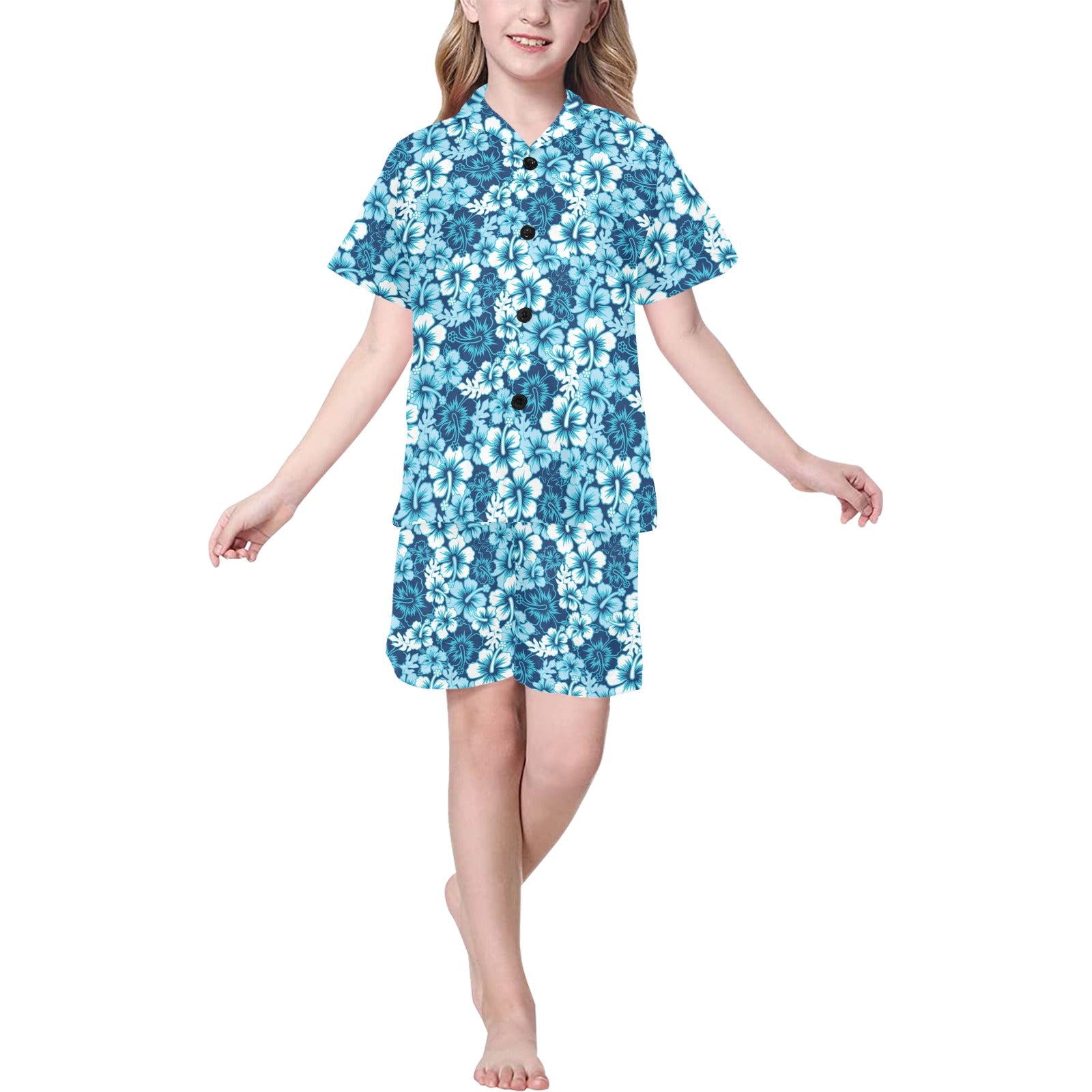 Hibiscus Pattern Print Design 03 Kids' Boys' Girls' V-Neck Short Pajama Set