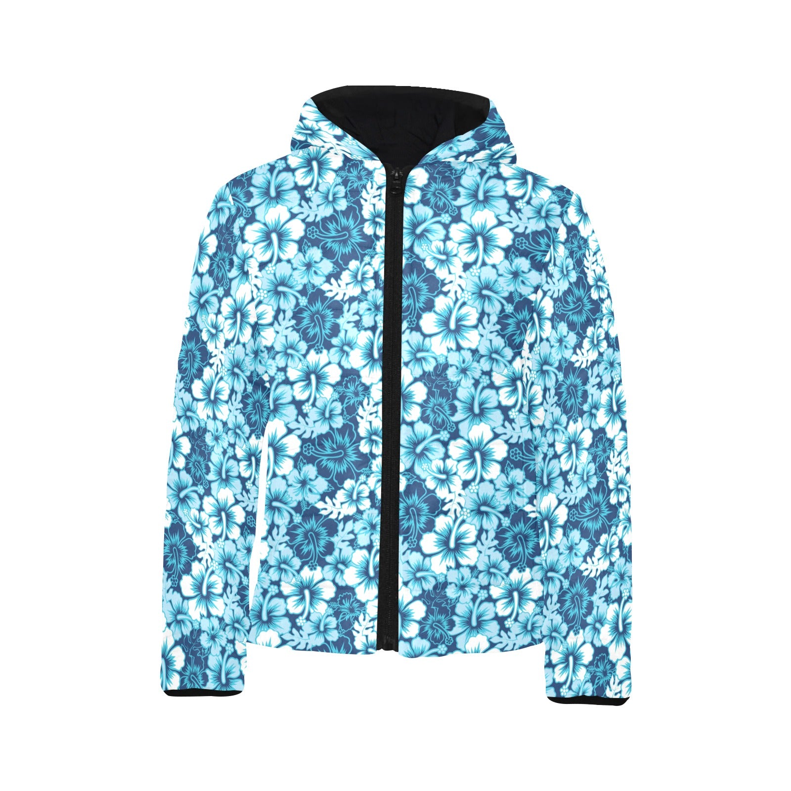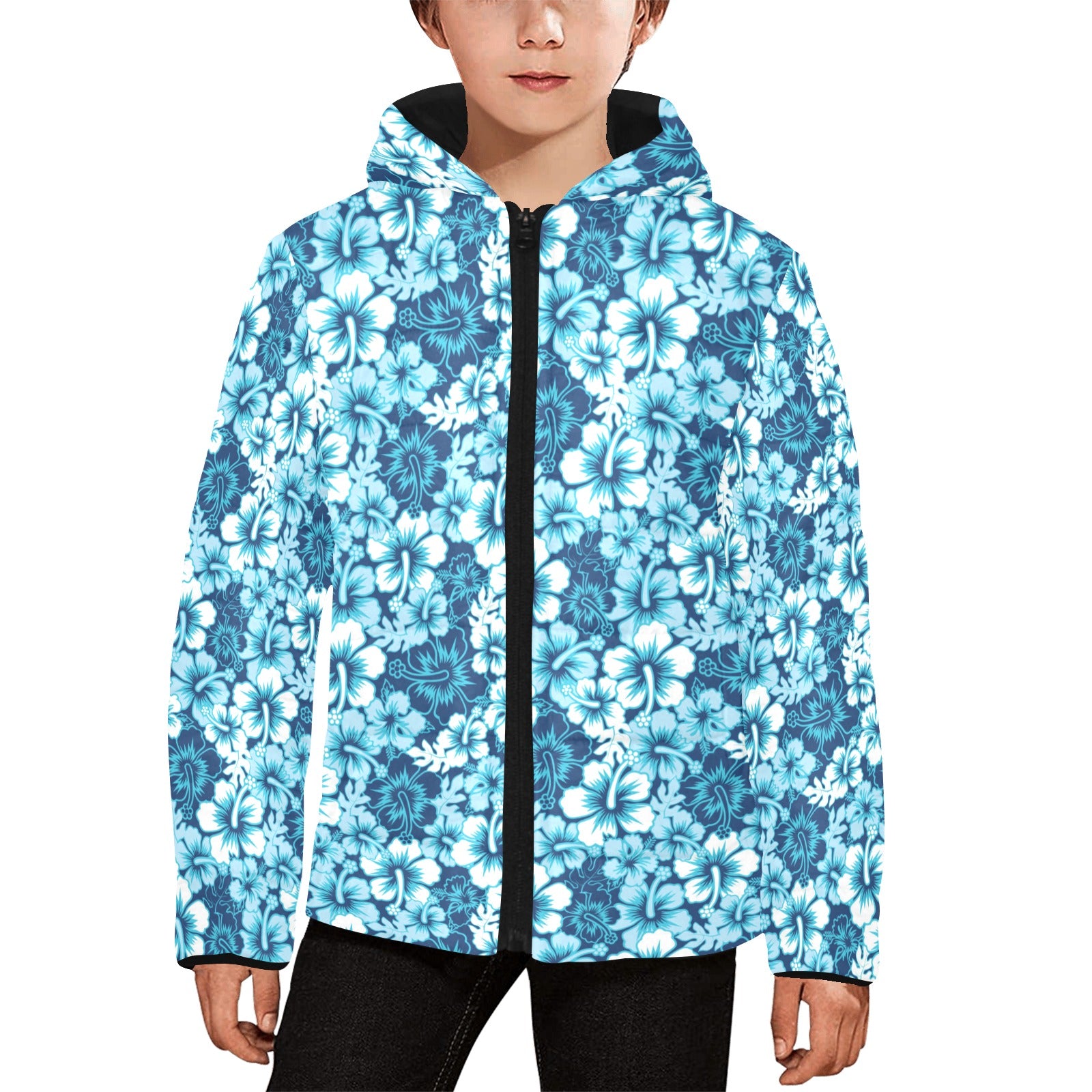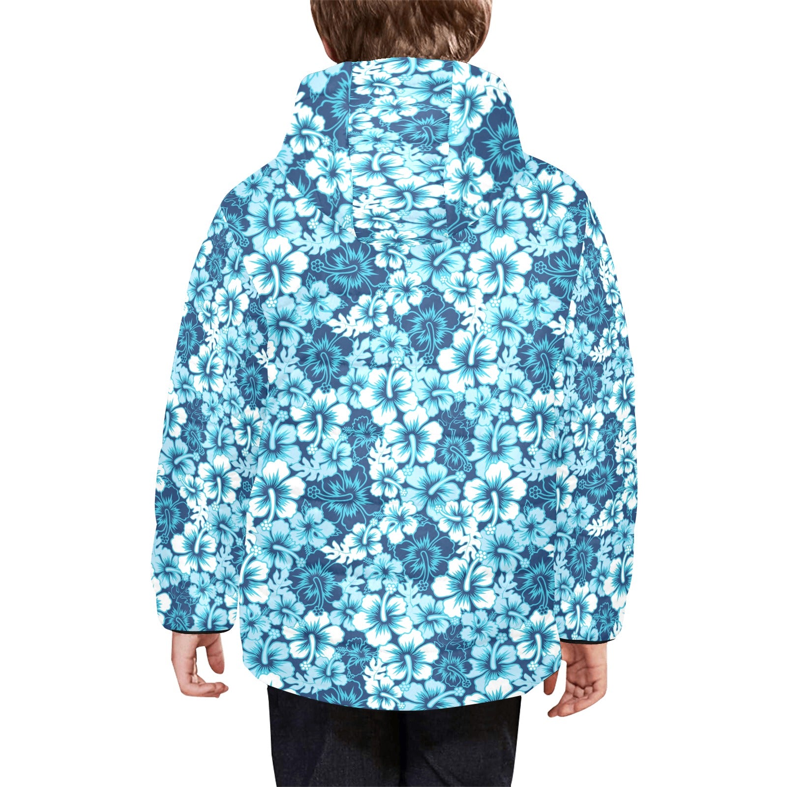 Hibiscus Pattern Print Design 03 Kids' Boys' Girls' Padded Hooded Jacket