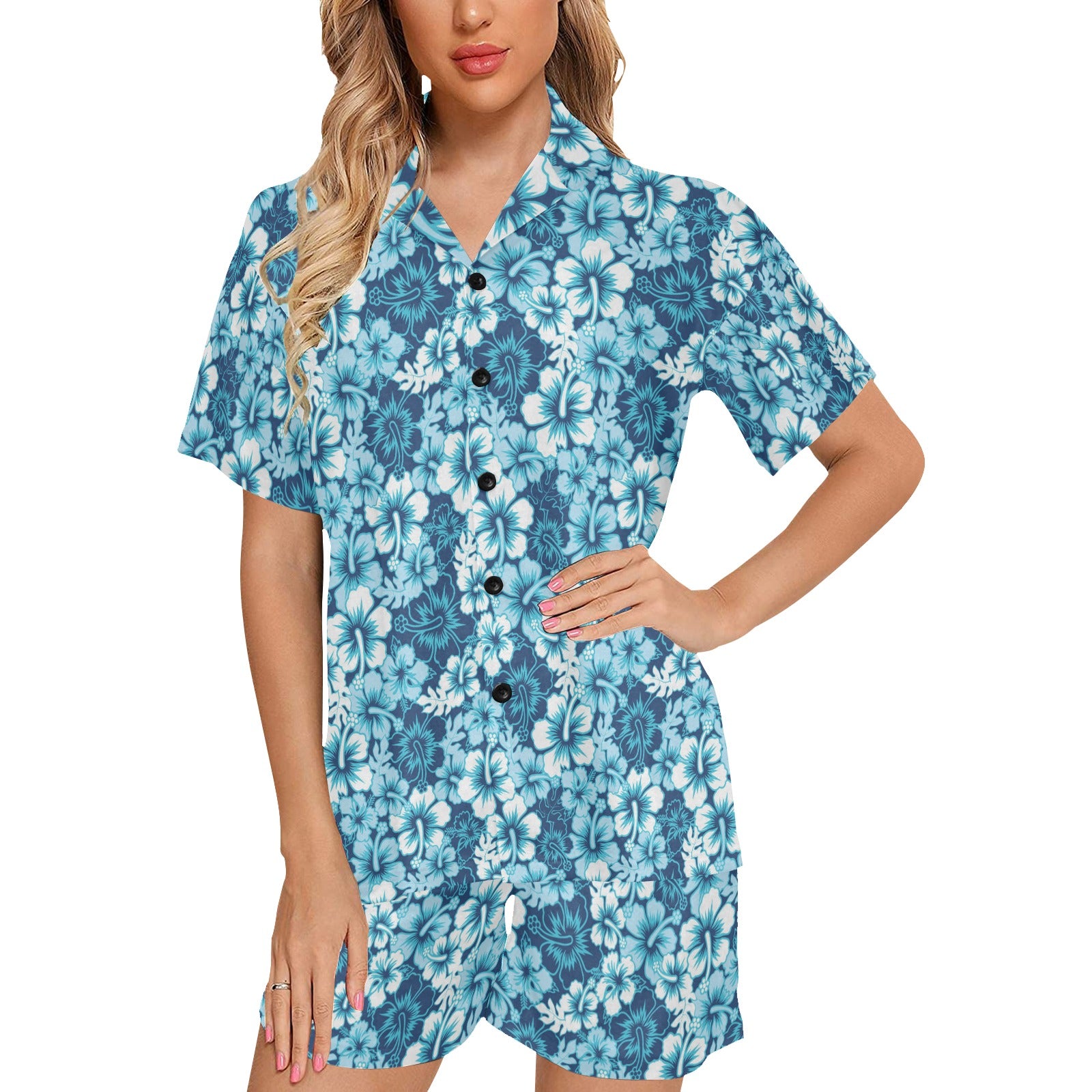 Hibiscus Pattern Print Design 03 Women's V-Neck Short Pajama Set