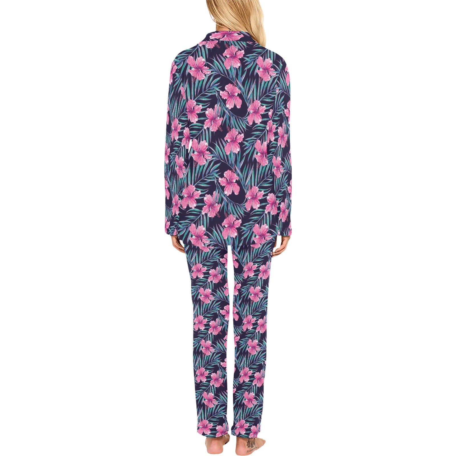 Hibiscus Pattern Print Design 05 Women's Long Pajama Set