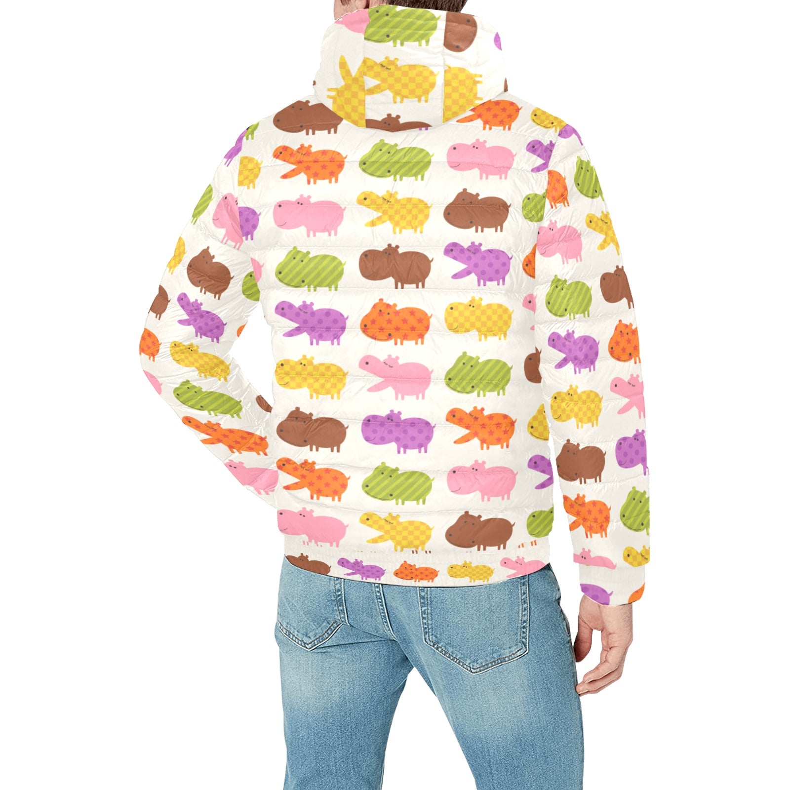 Hippopotamus Pattern Print Design 01 Men's Padded Hooded Jacket
