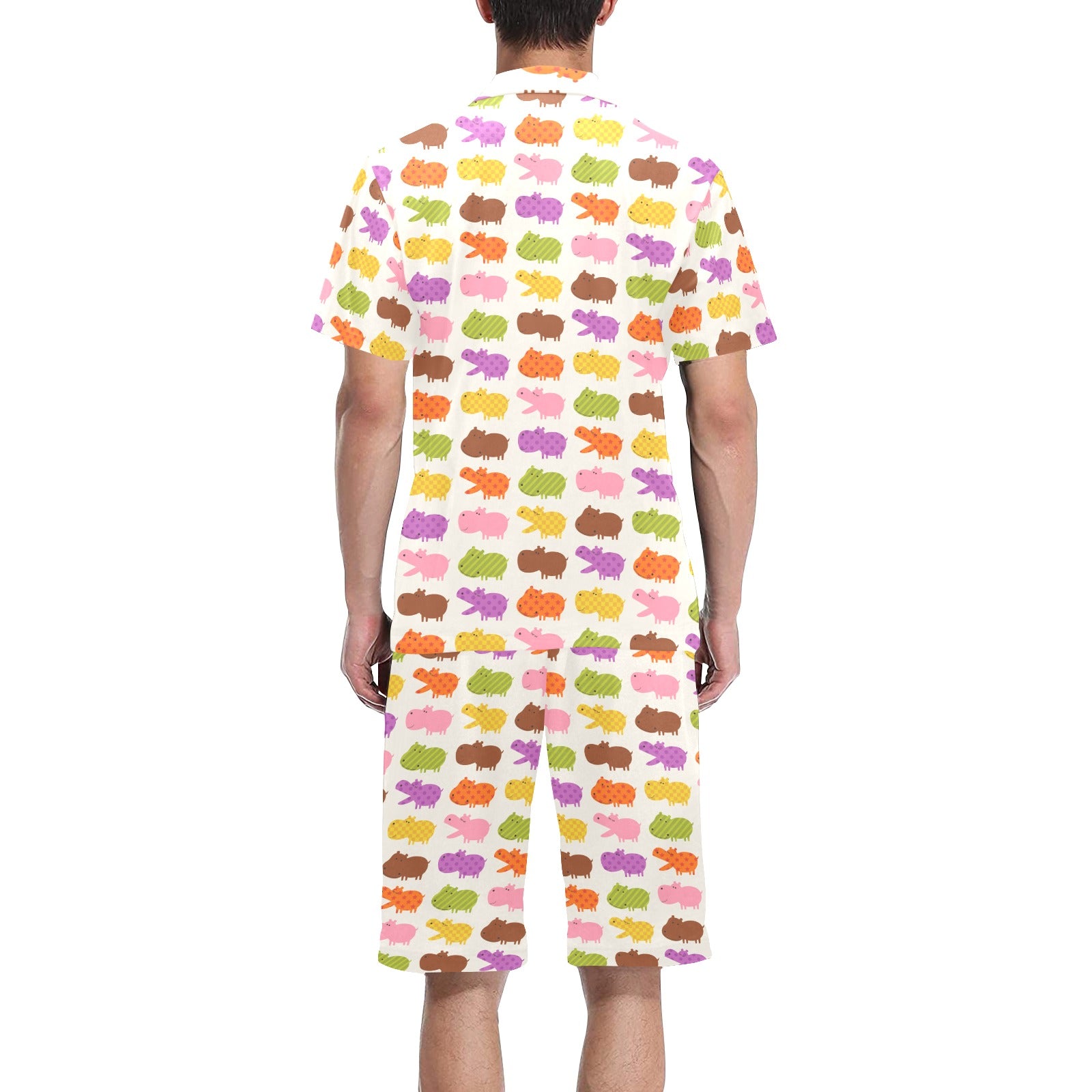 Hippopotamus Pattern Print Design 01 Men's V-Neck Short Pajama Set