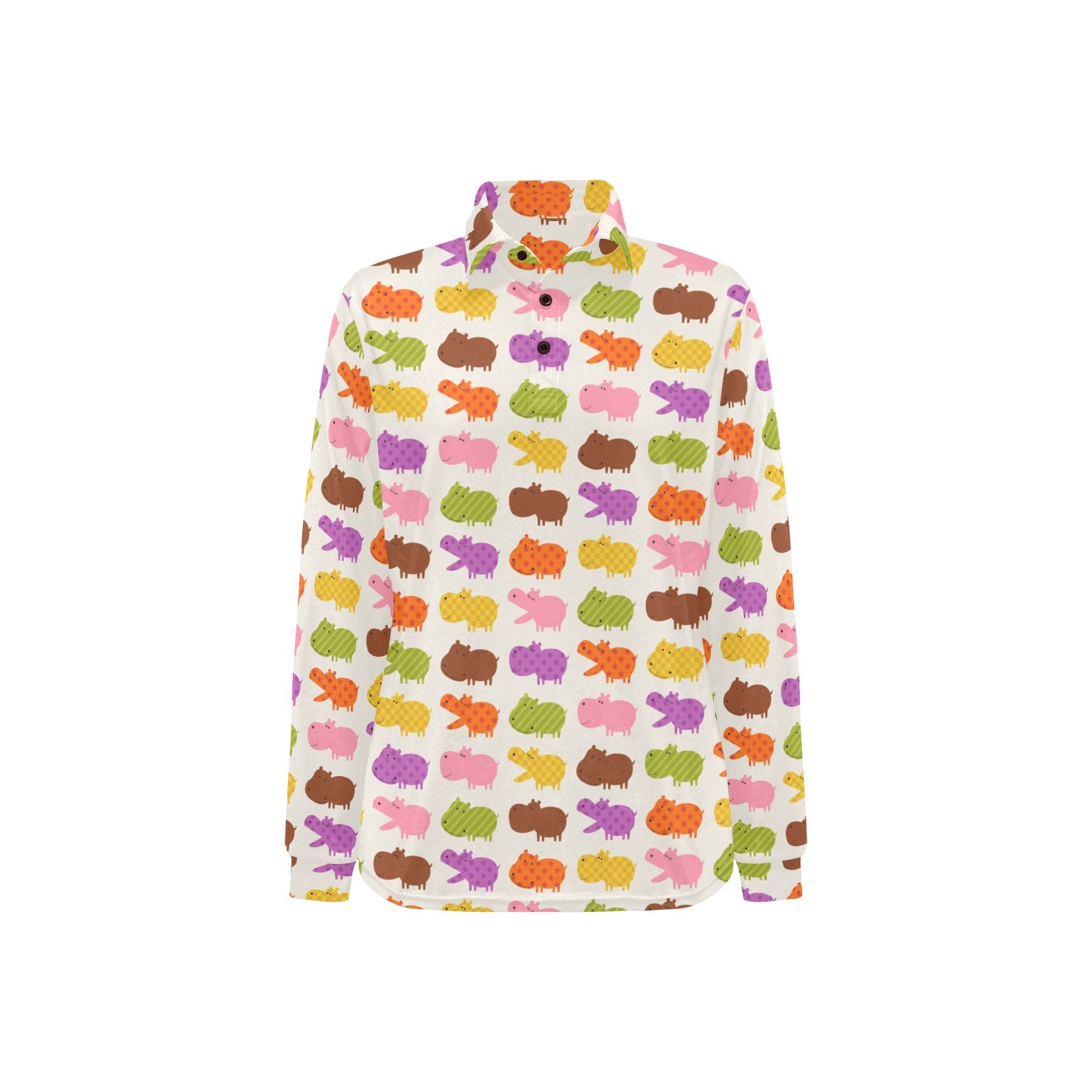 Hippopotamus Pattern Print Design 01 Women's Long Sleeve Polo Shirt