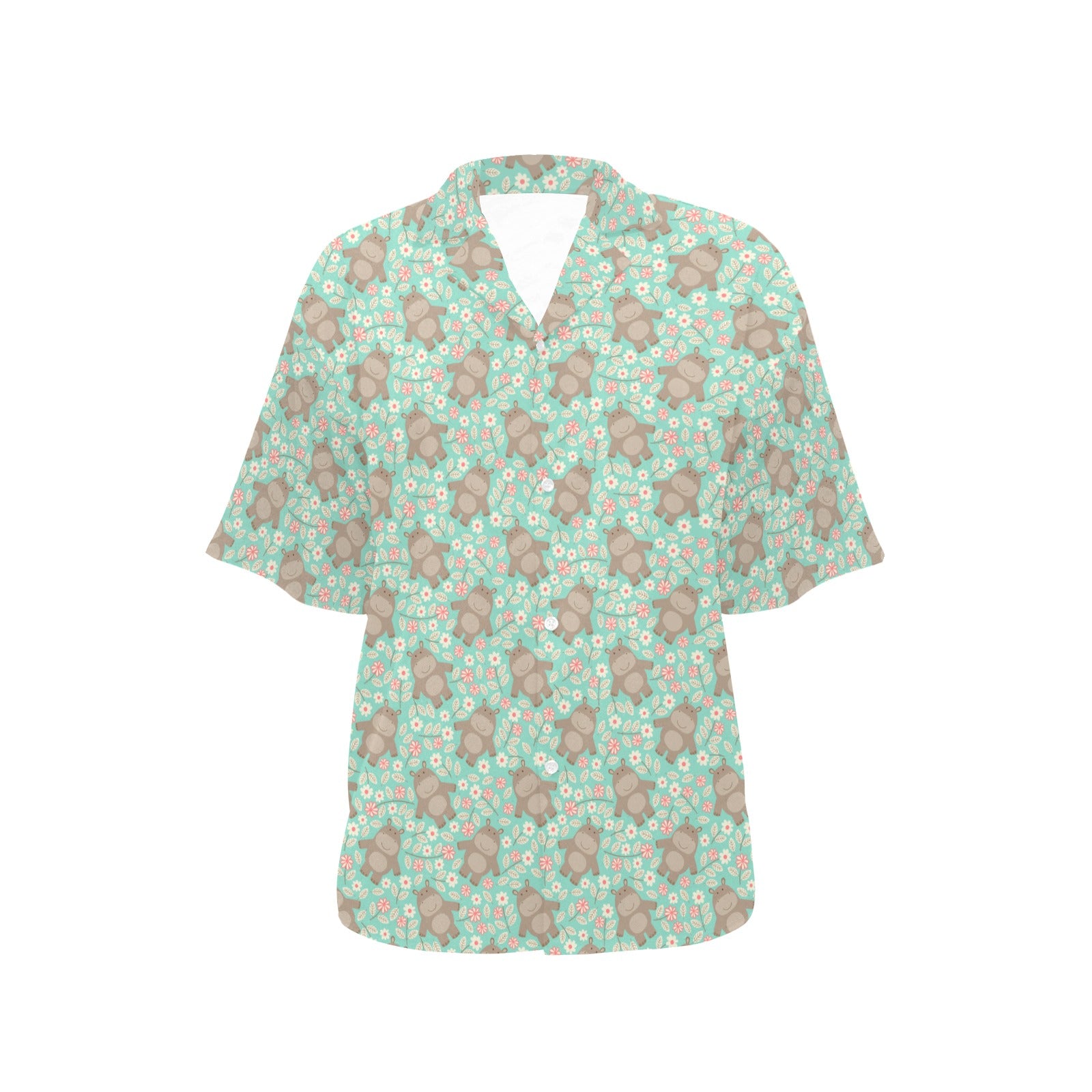 Hippopotamus Pattern Print Design 02 Women's All Over Print Hawaiian Shirt