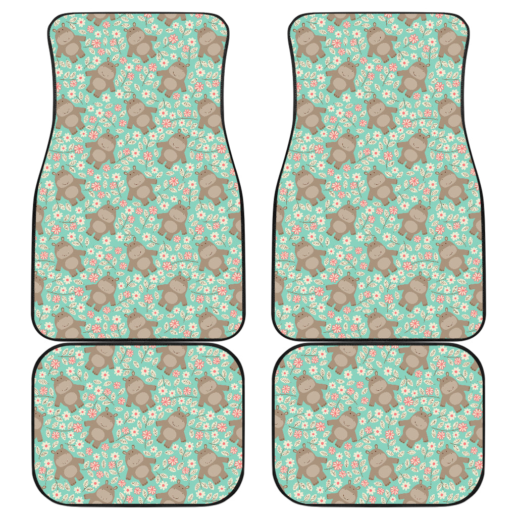 Hippopotamus Pattern Print Design 02 Front and Back Car Mats