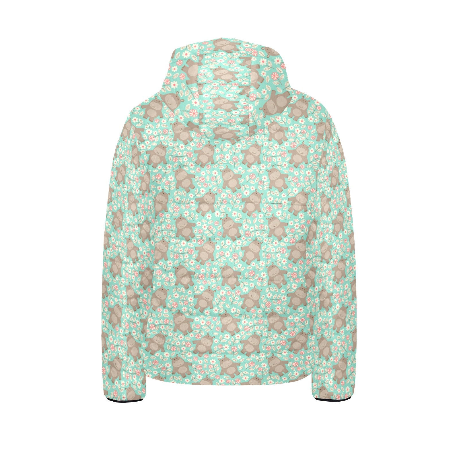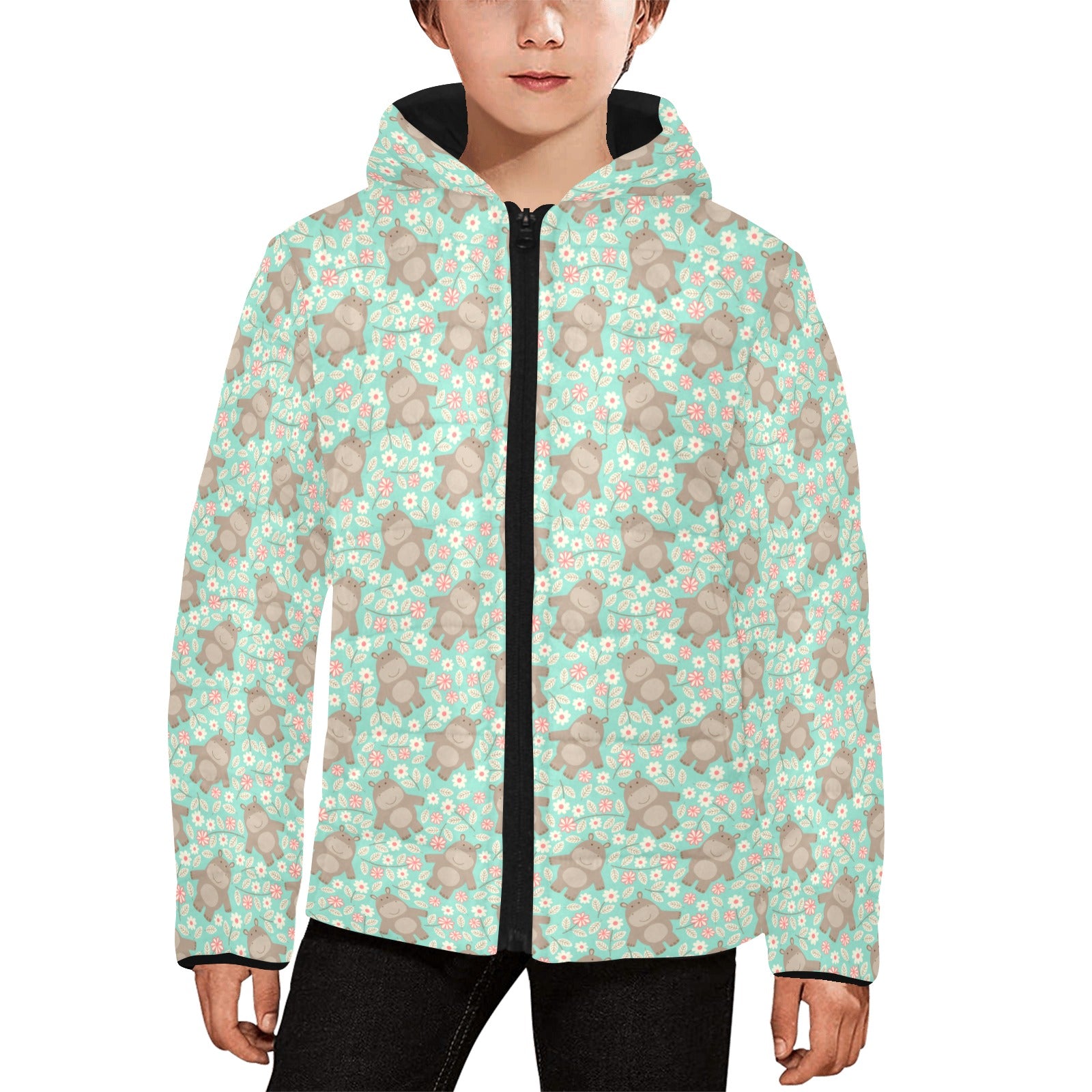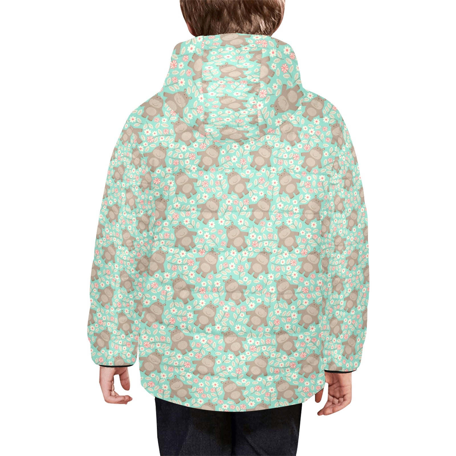 Hippopotamus Pattern Print Design 02 Kids' Boys' Girls' Padded Hooded Jacket