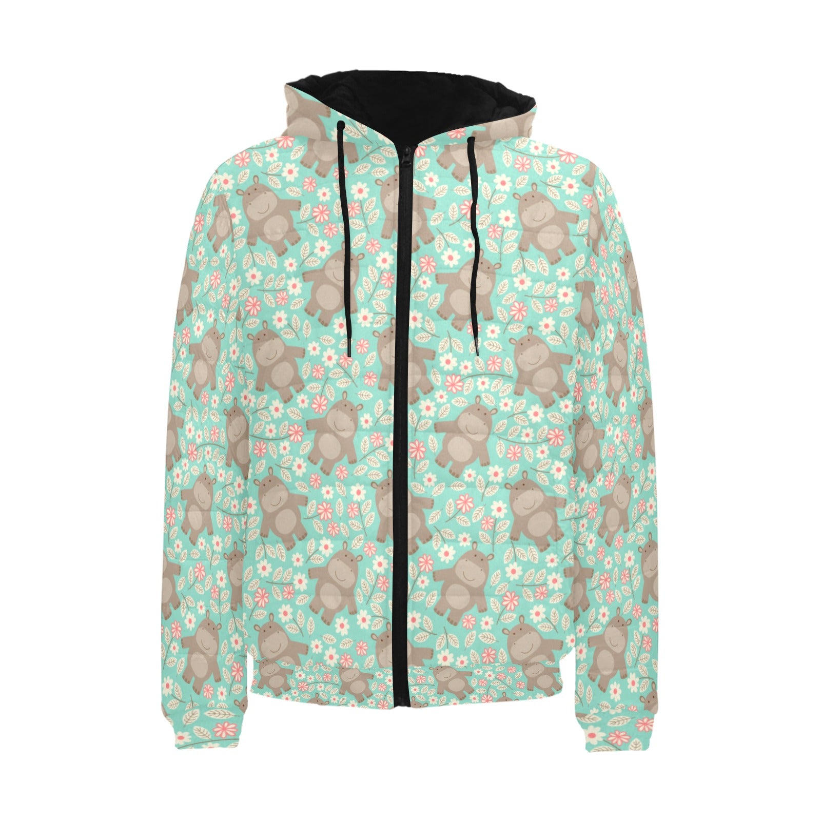 Hippopotamus Pattern Print Design 02 Men's Padded Hooded Jacket