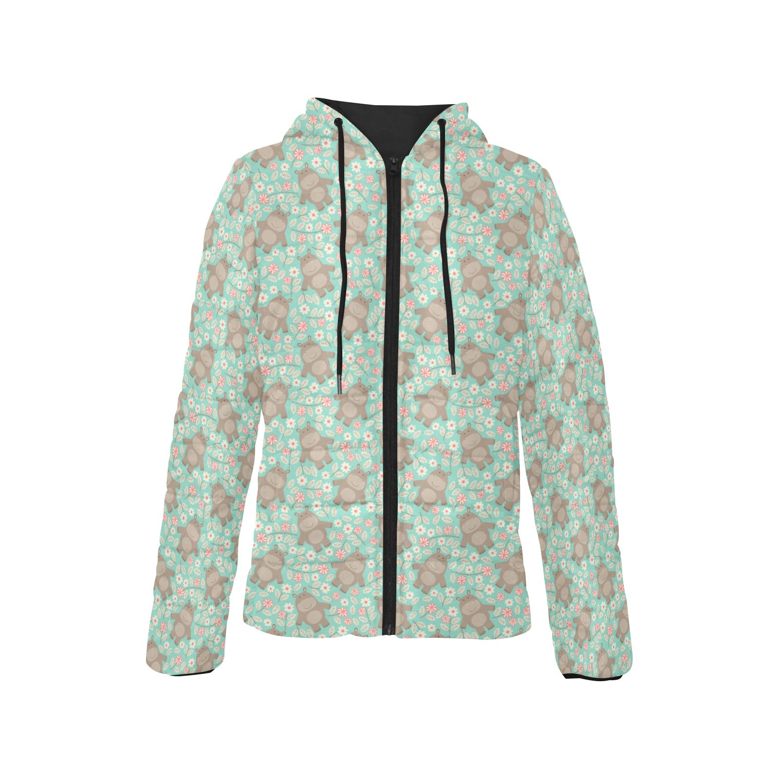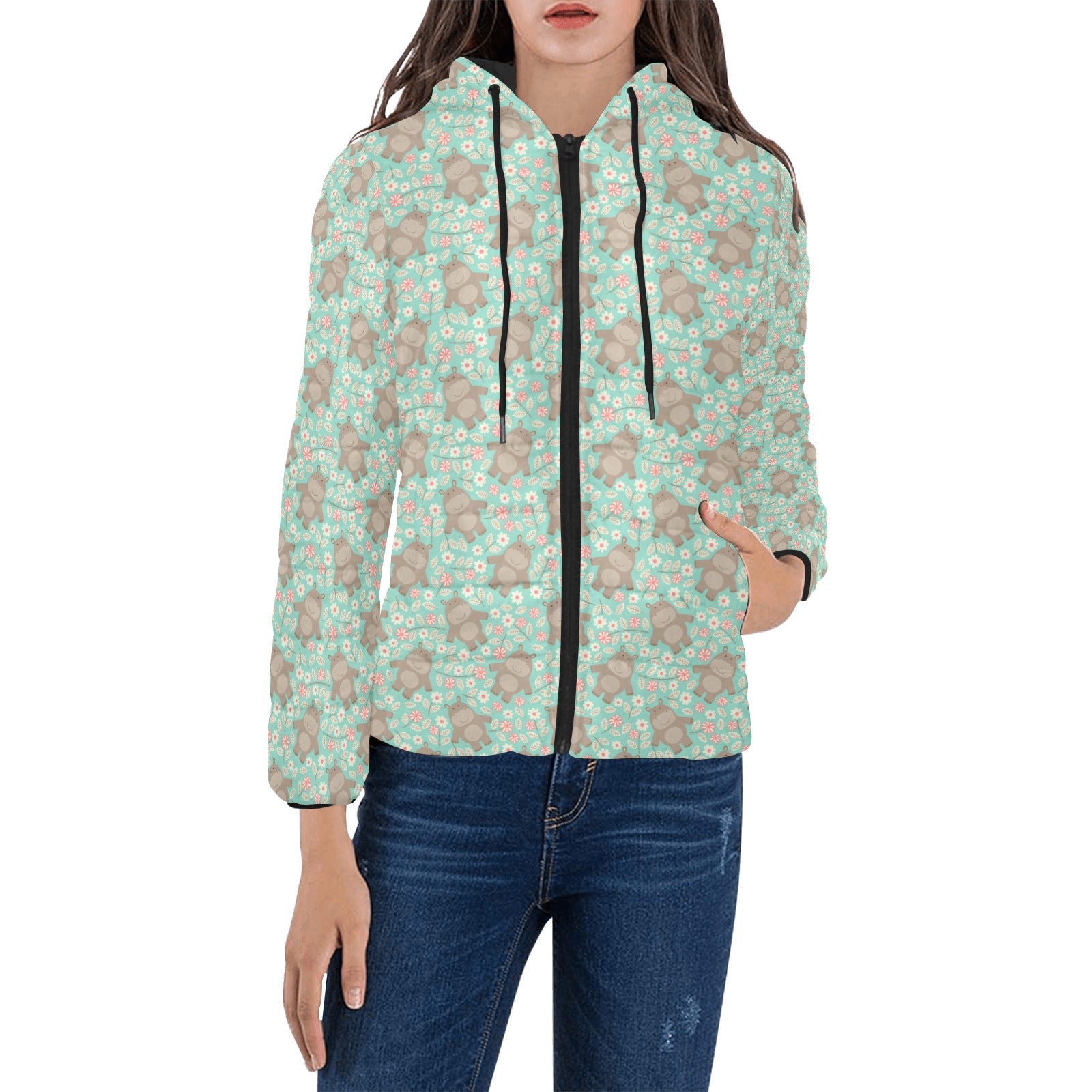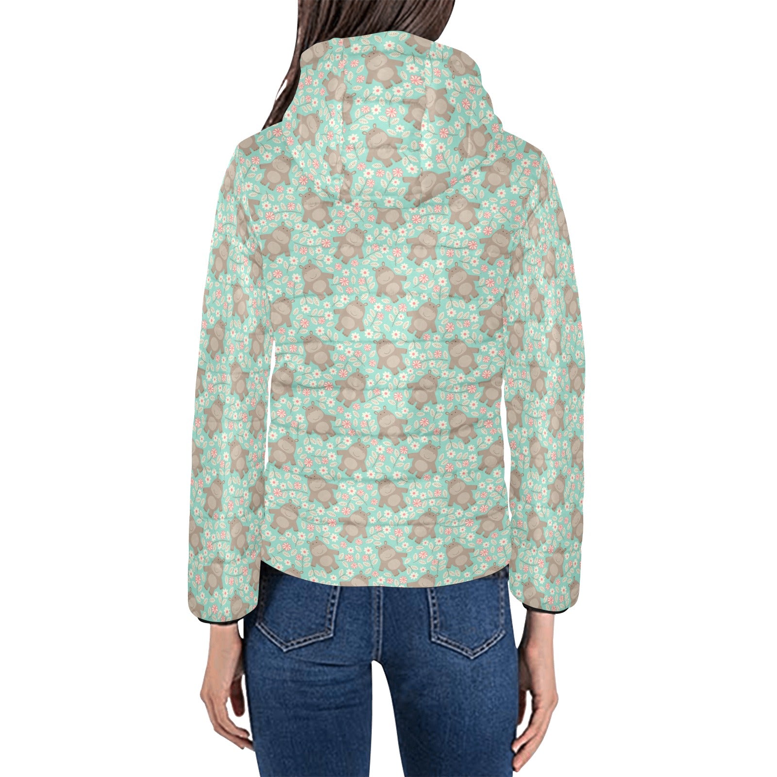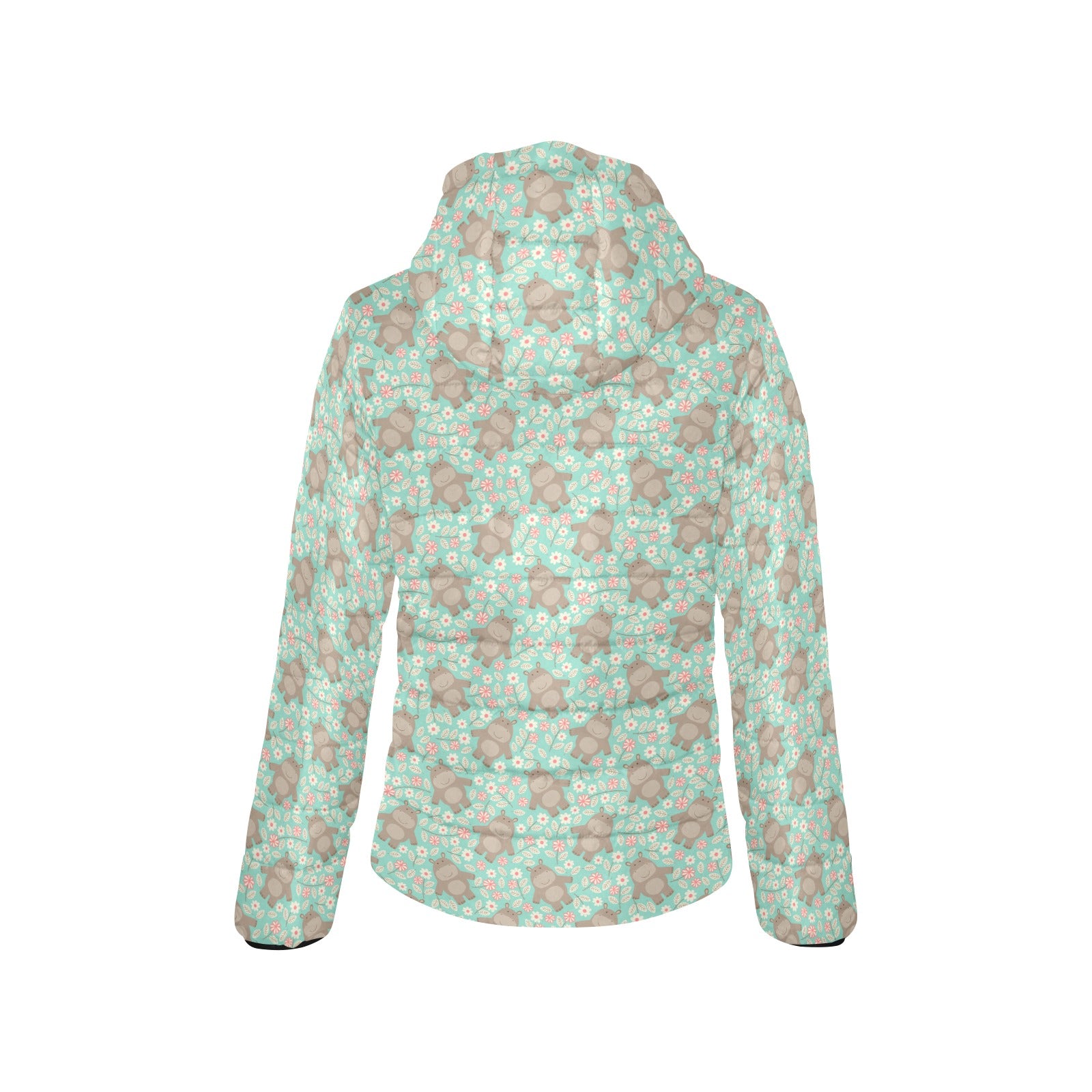 Hippopotamus Pattern Print Design 02 Women's Padded Hooded Jacket