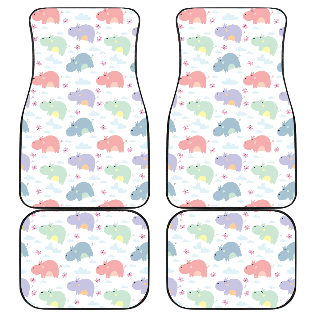 Hippopotamus Pattern Print Design 03 Front and Back Car Mats