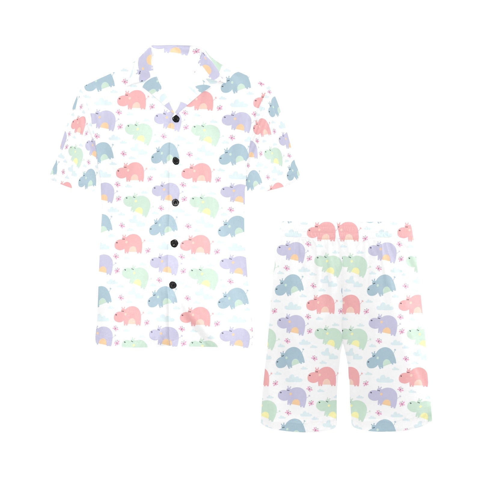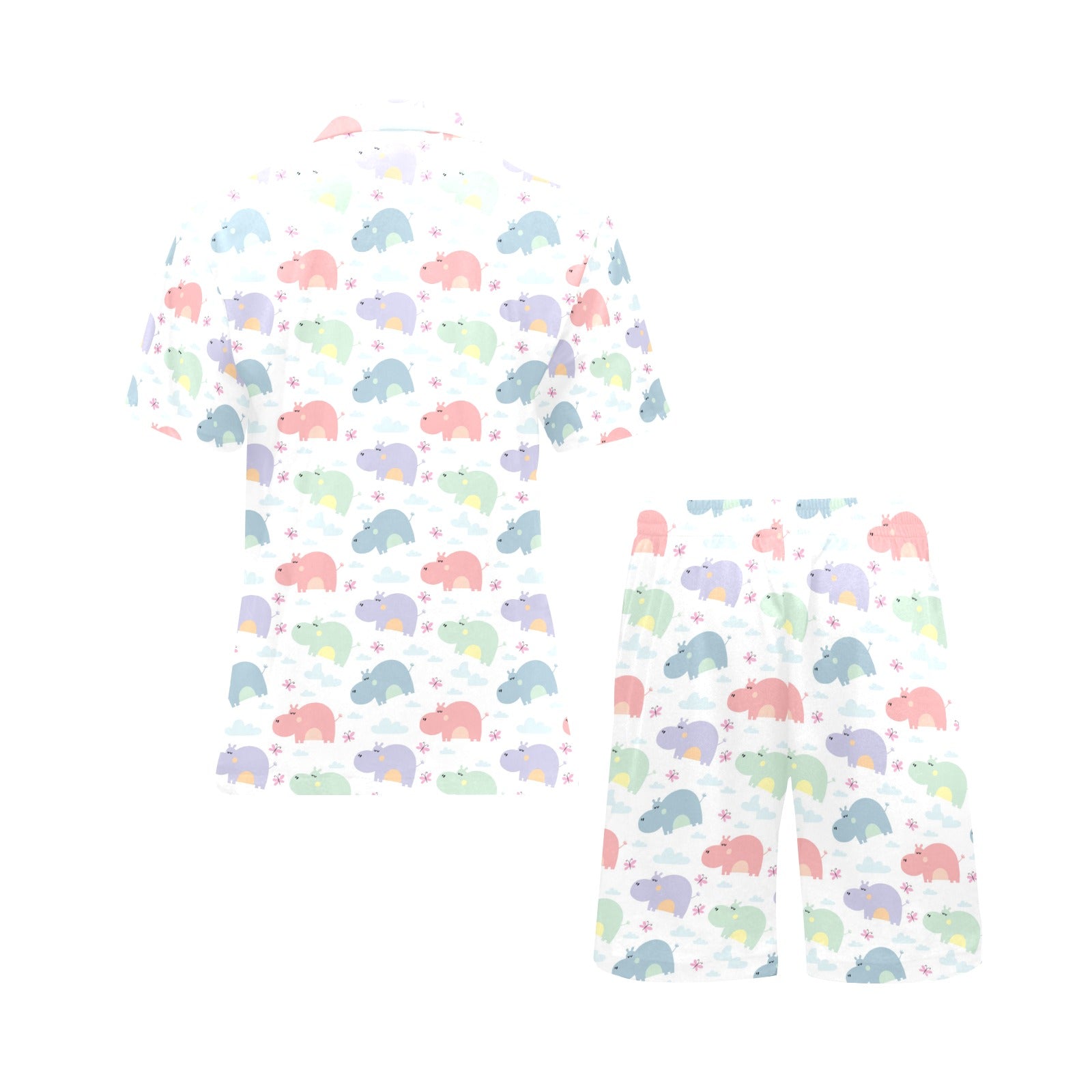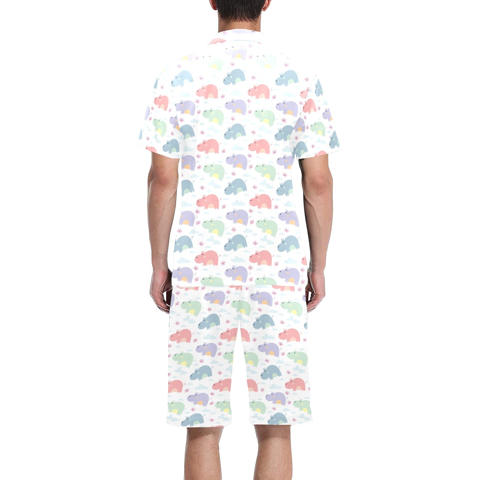 Hippopotamus Pattern Print Design 03 Men's V-Neck Short Pajama Set