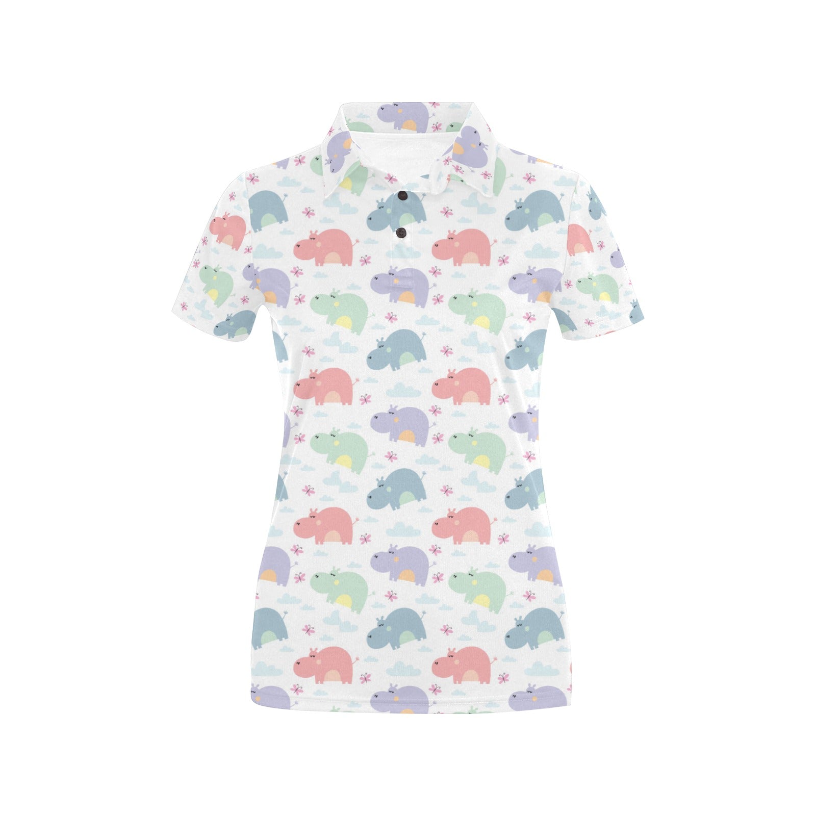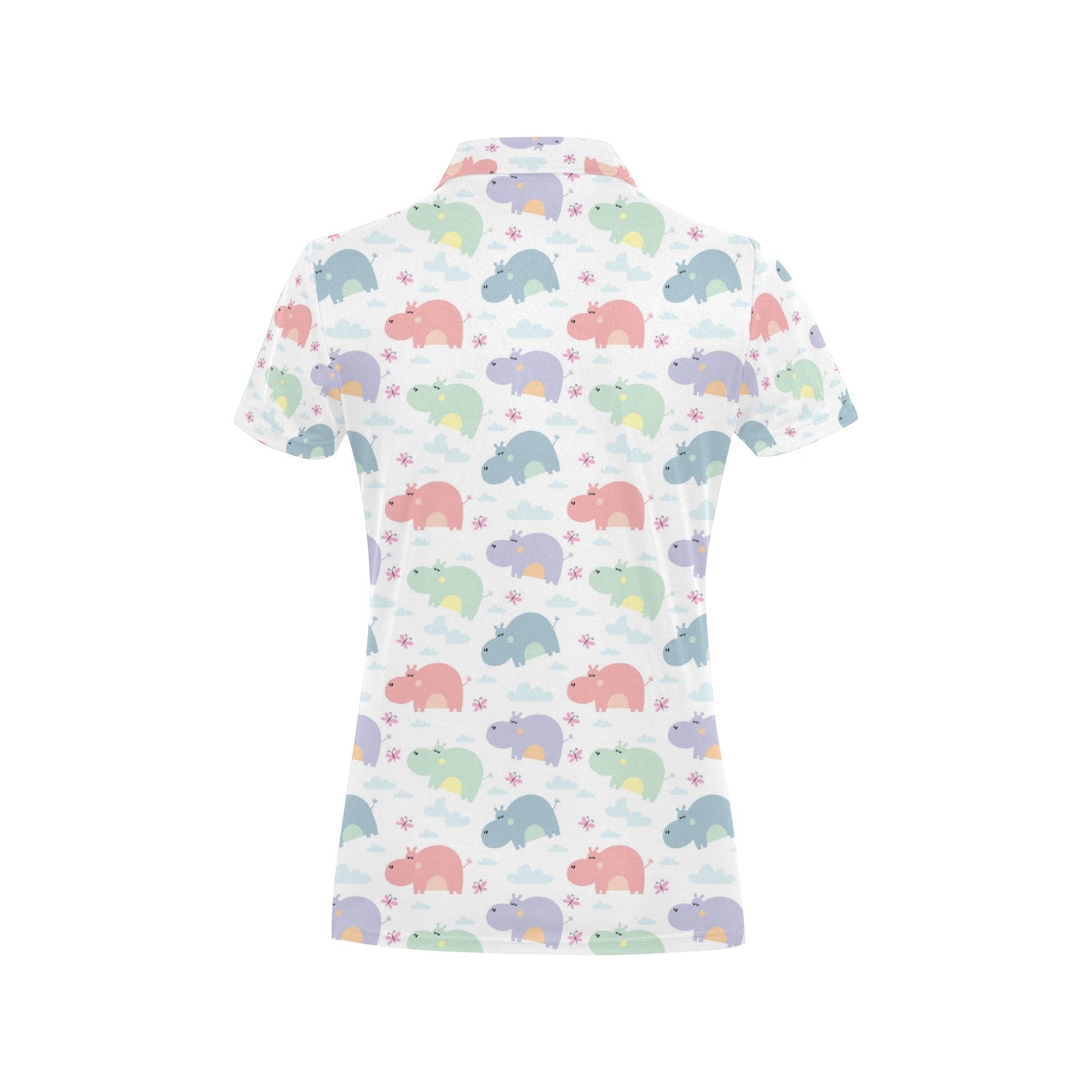 Hippopotamus Pattern Print Design 03 Women's All Over Print Polo Shirt