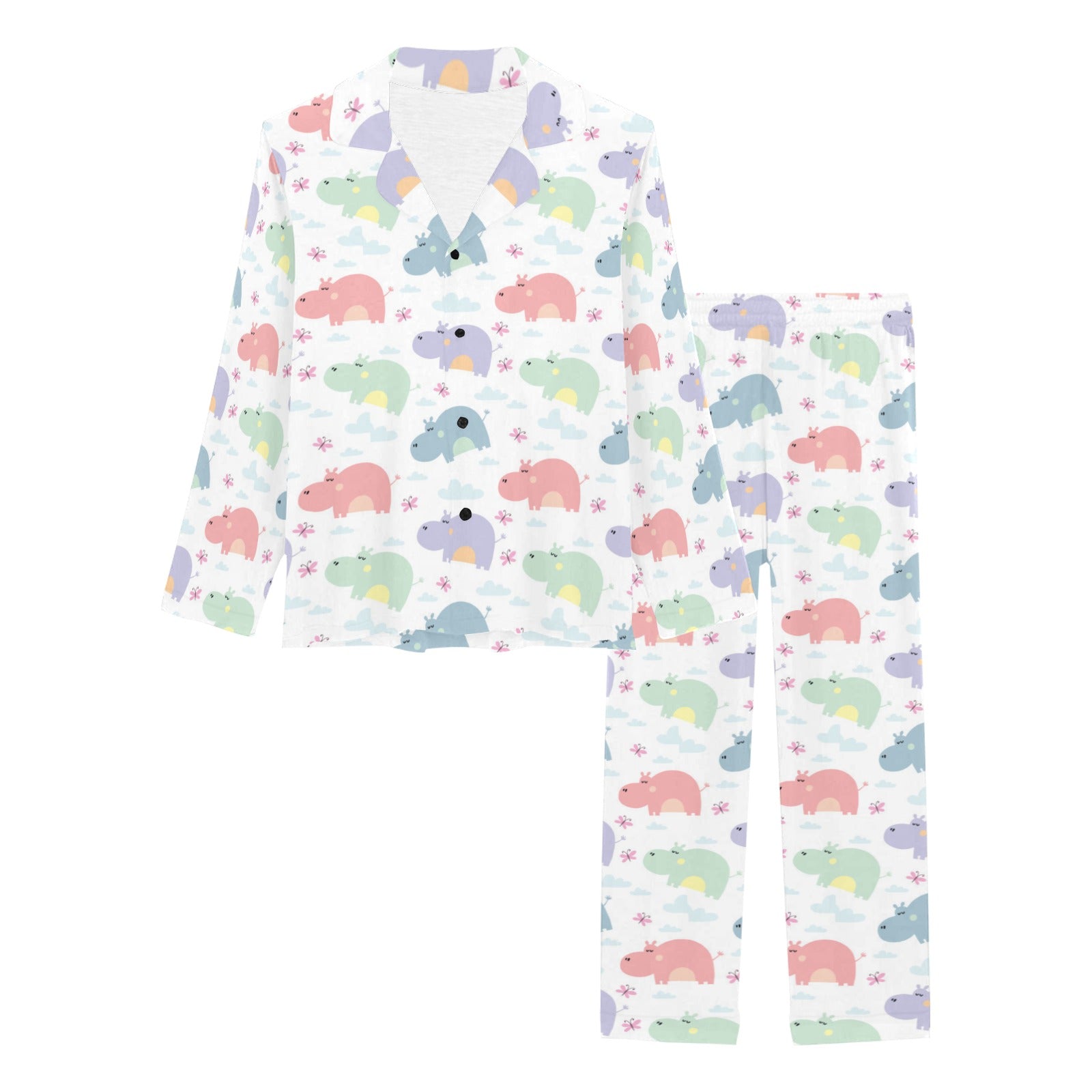 Hippopotamus Pattern Print Design 03 Women's Long Pajama Set