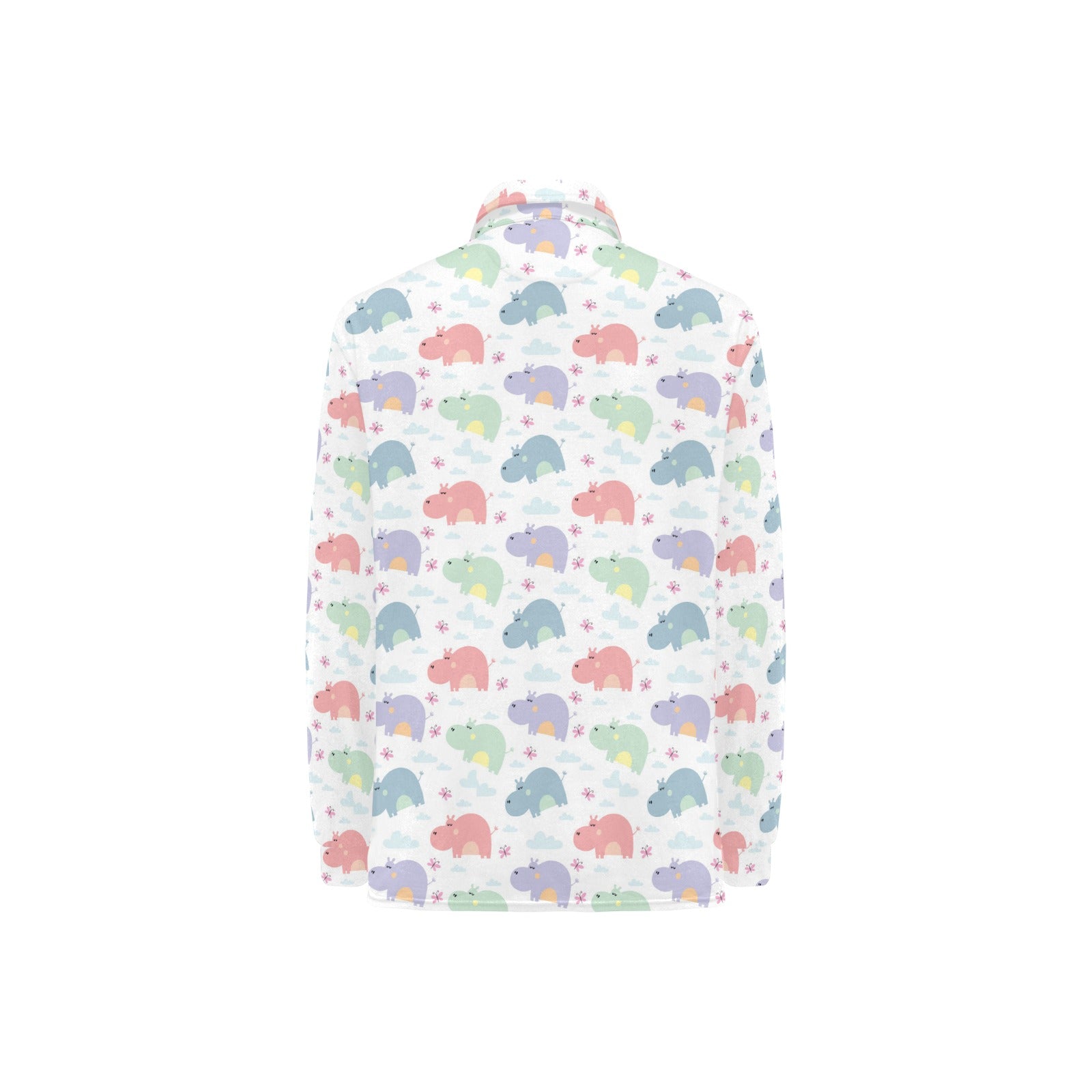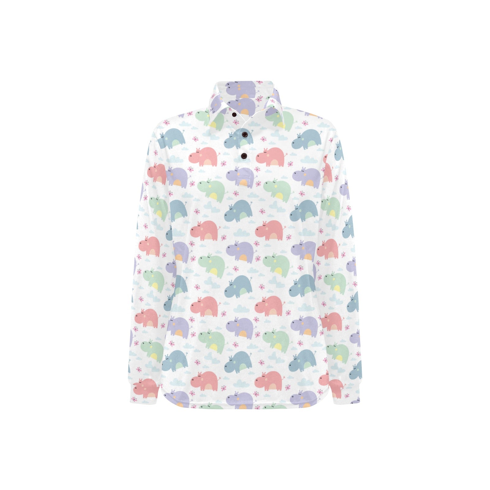 Hippopotamus Pattern Print Design 03 Women's Long Sleeve Polo Shirt