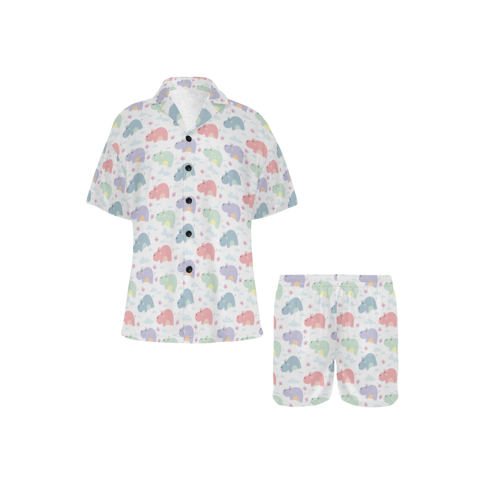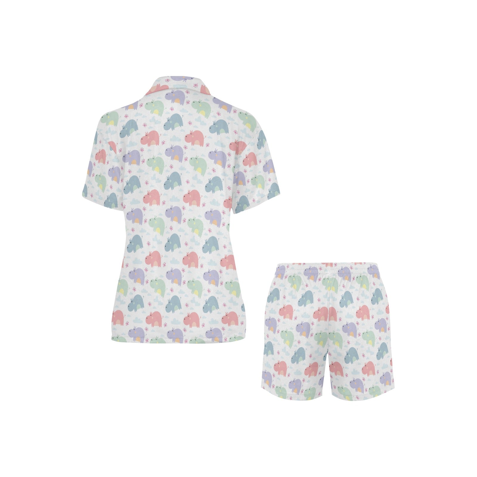 Hippopotamus Pattern Print Design 03 Women's V-Neck Short Pajama Set