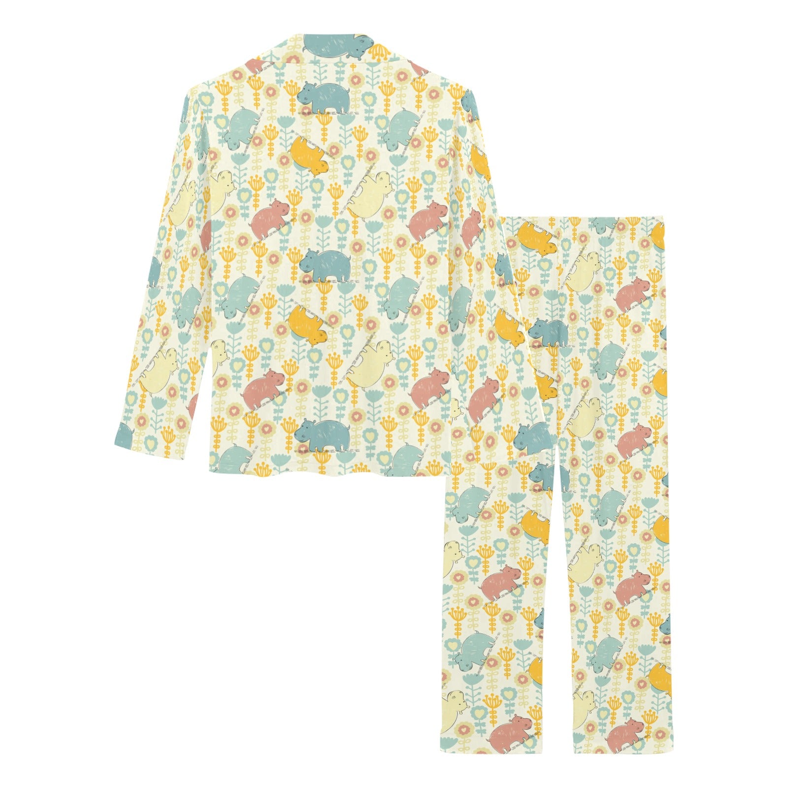 Hippopotamus Pattern Print Design 04 Women's Long Pajama Set
