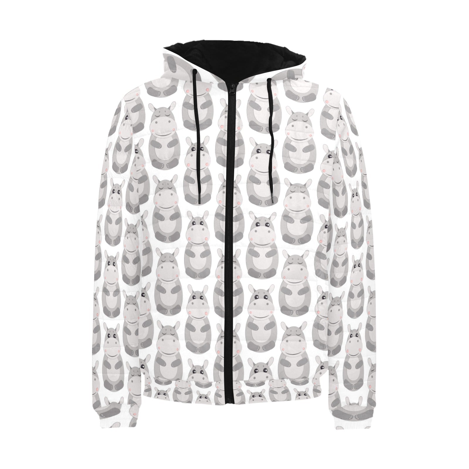 Hippopotamus Pattern Print Design 05 Men's Padded Hooded Jacket