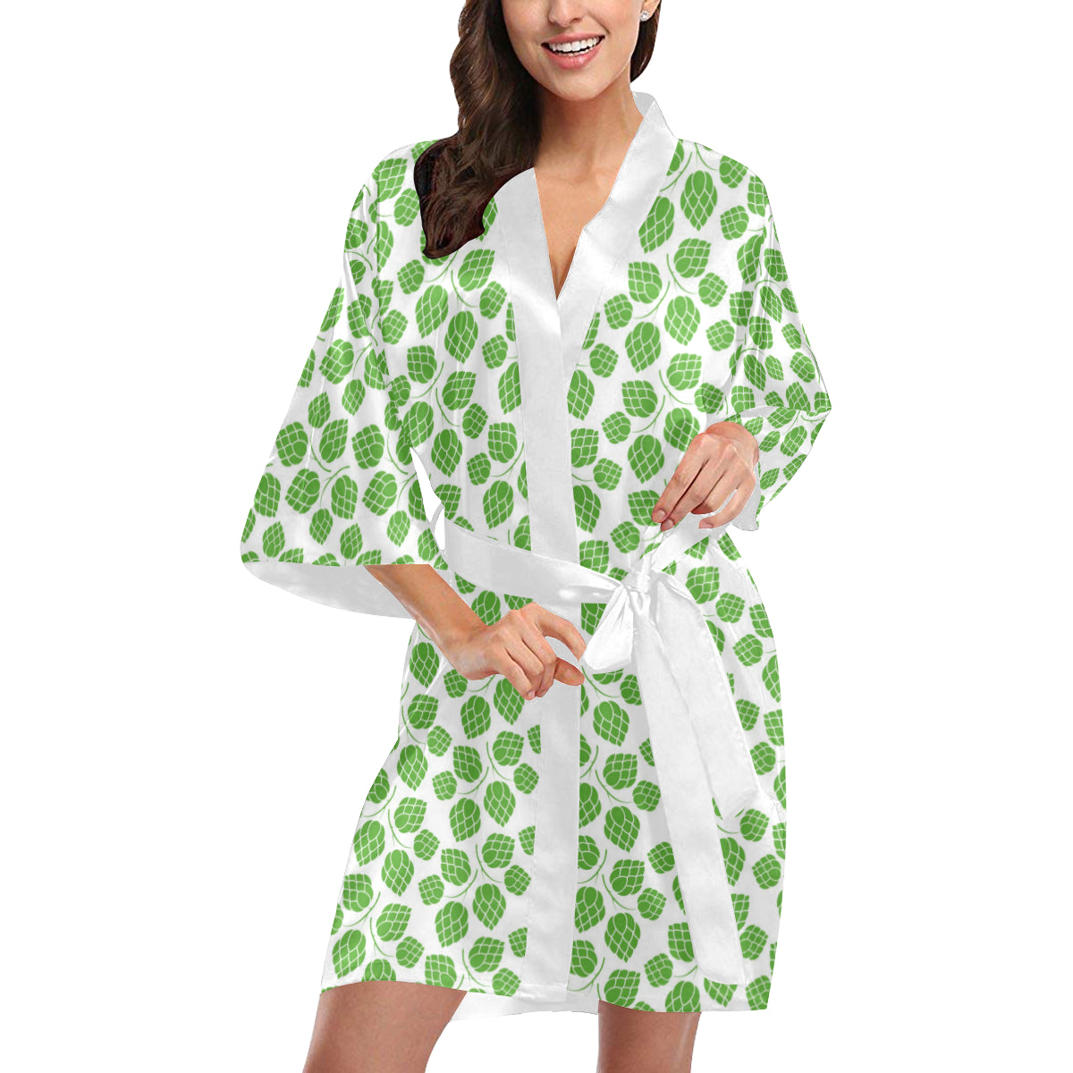 Hop pattern background Women's Short Kimono Robe is a uniqued design and limited item. It made to order, hand printed, and sewn with love in our factory.
