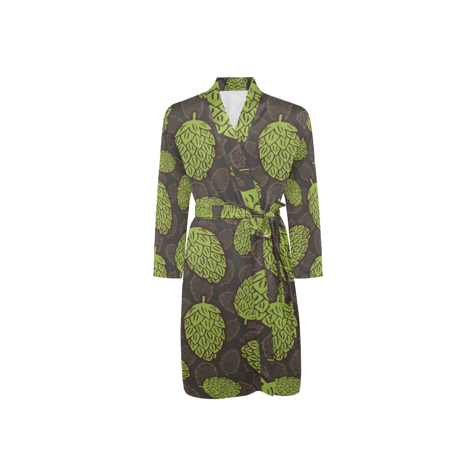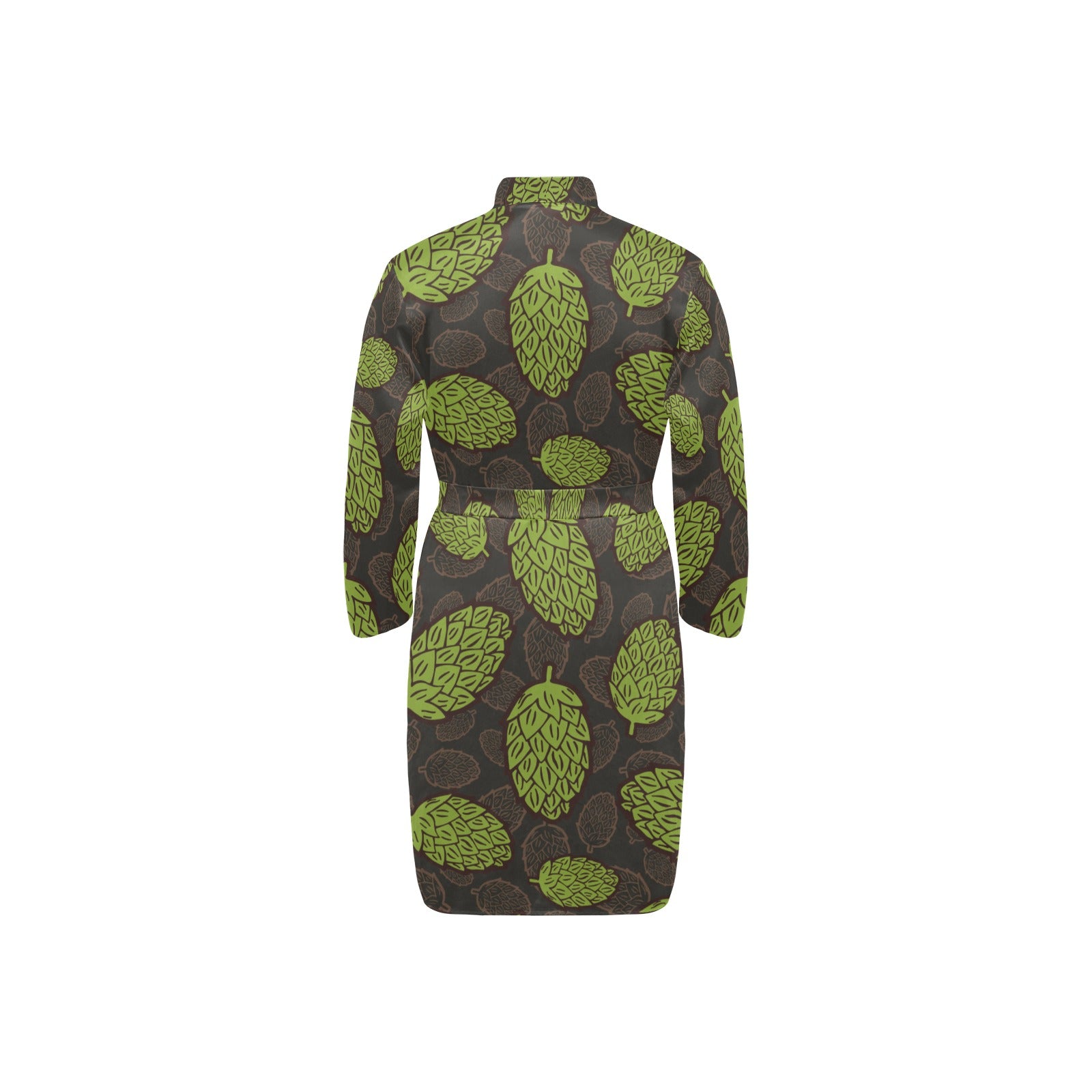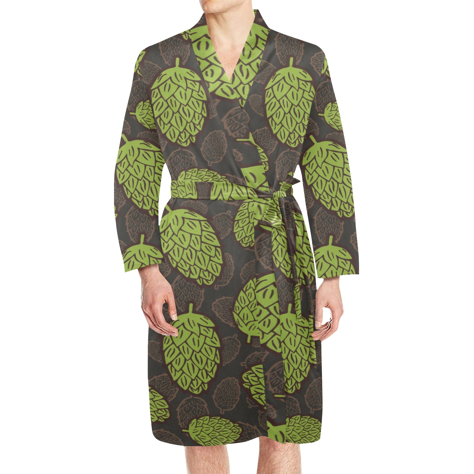 Hop pattern black background Men's Long Sleeve Belted Night Robe