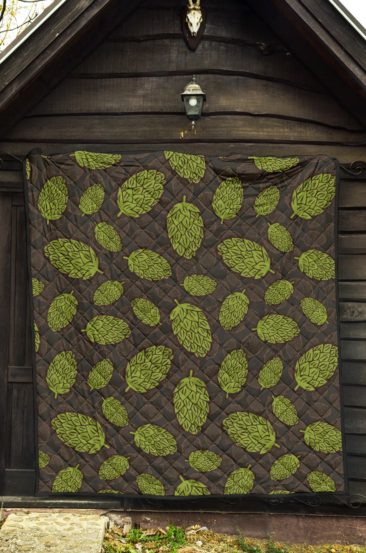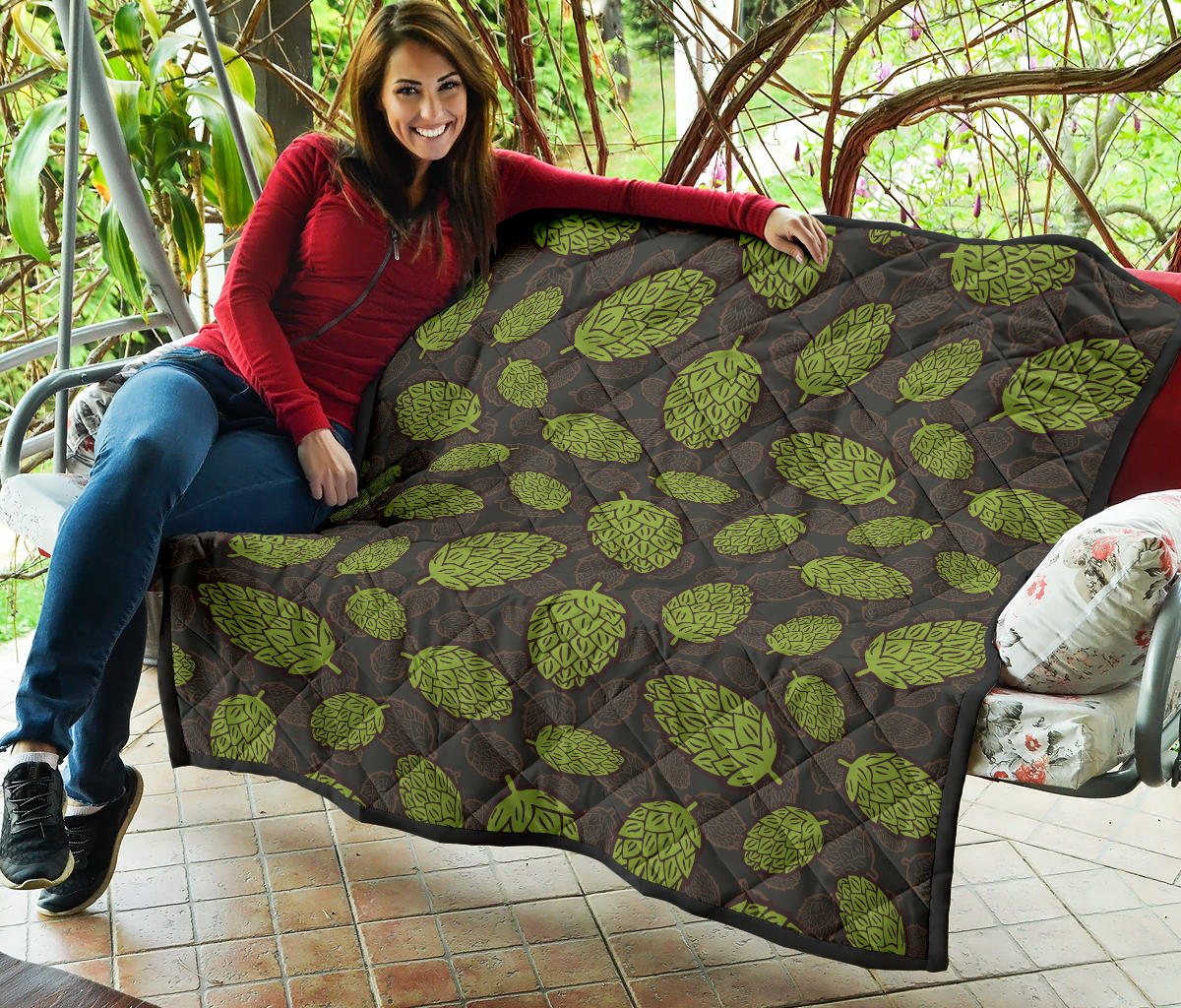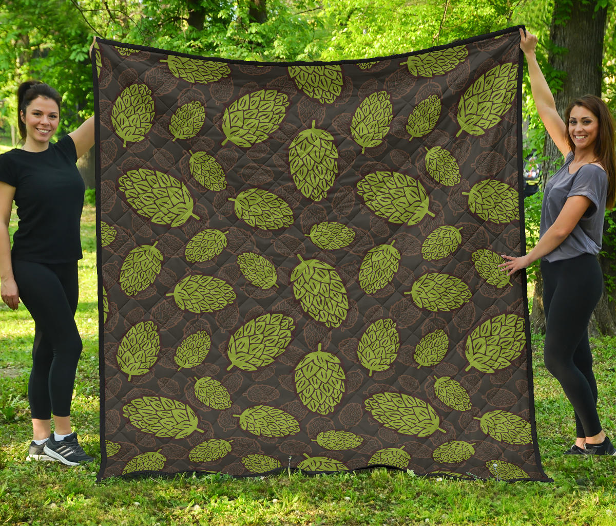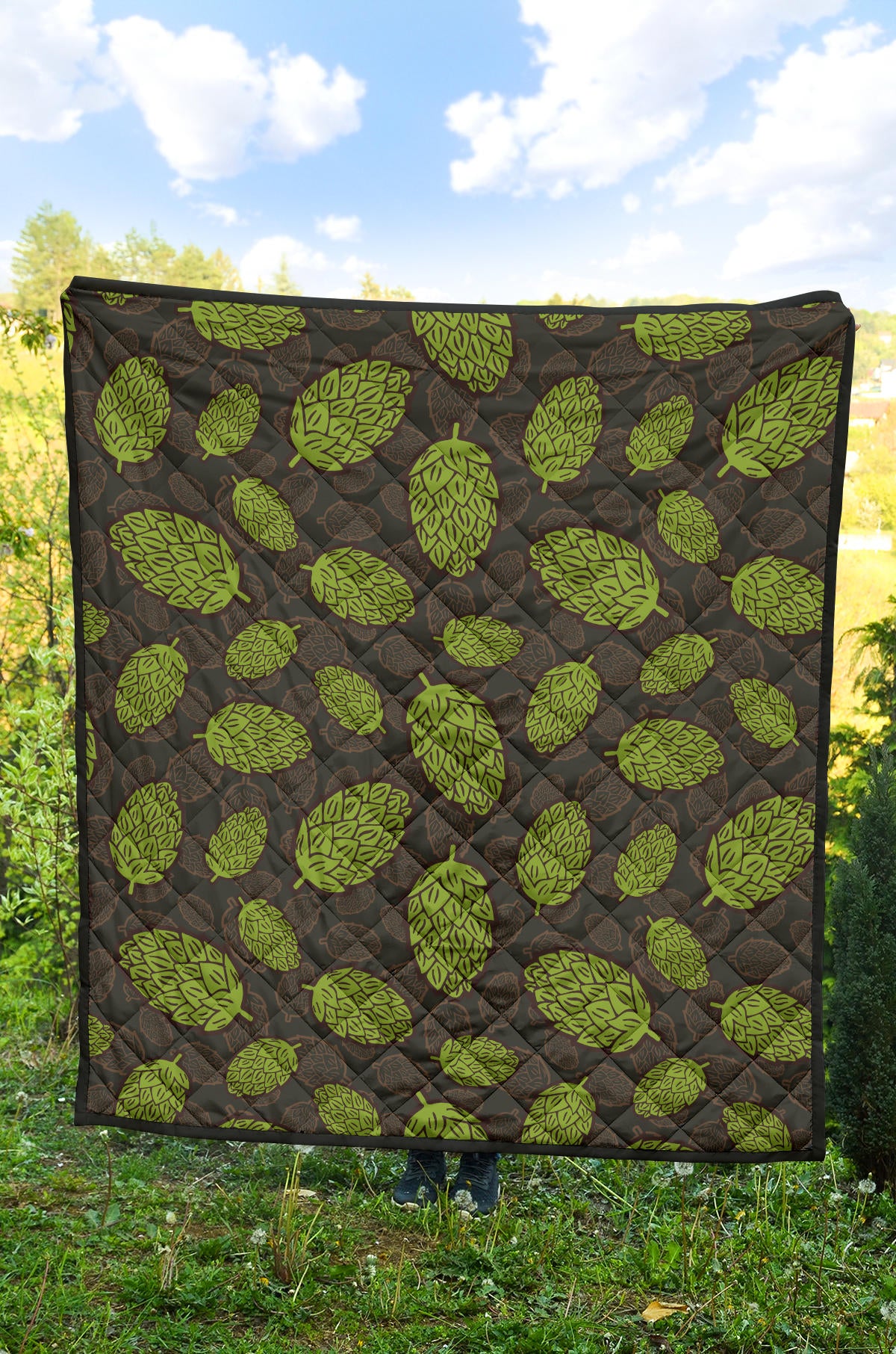 Hop Pattern Black Background Premium Quilt is a uniqued design and limited item. It made to order, hand printed, and sewn with love in our factory.