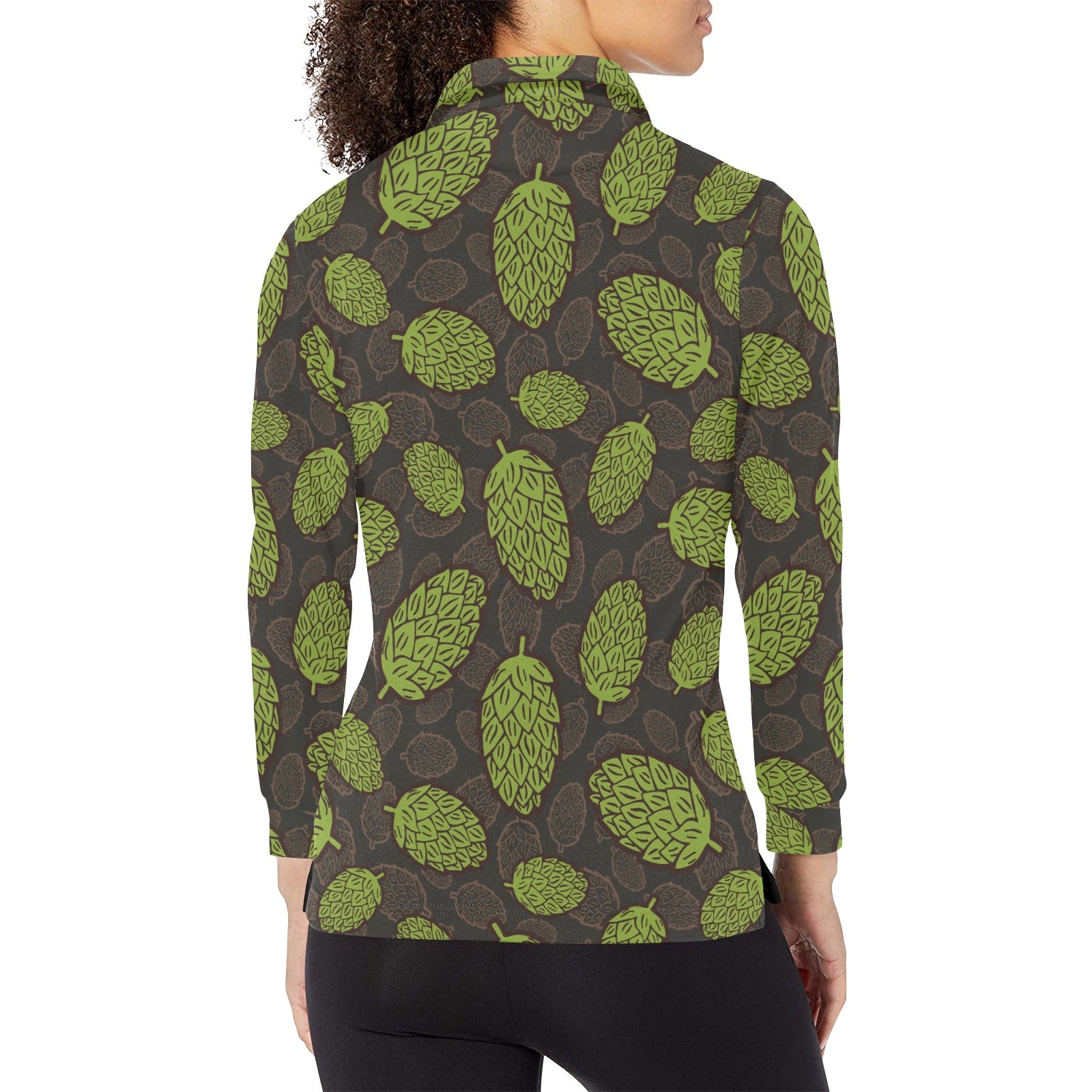 Hop pattern black background Women's Long Sleeve Polo Shirt