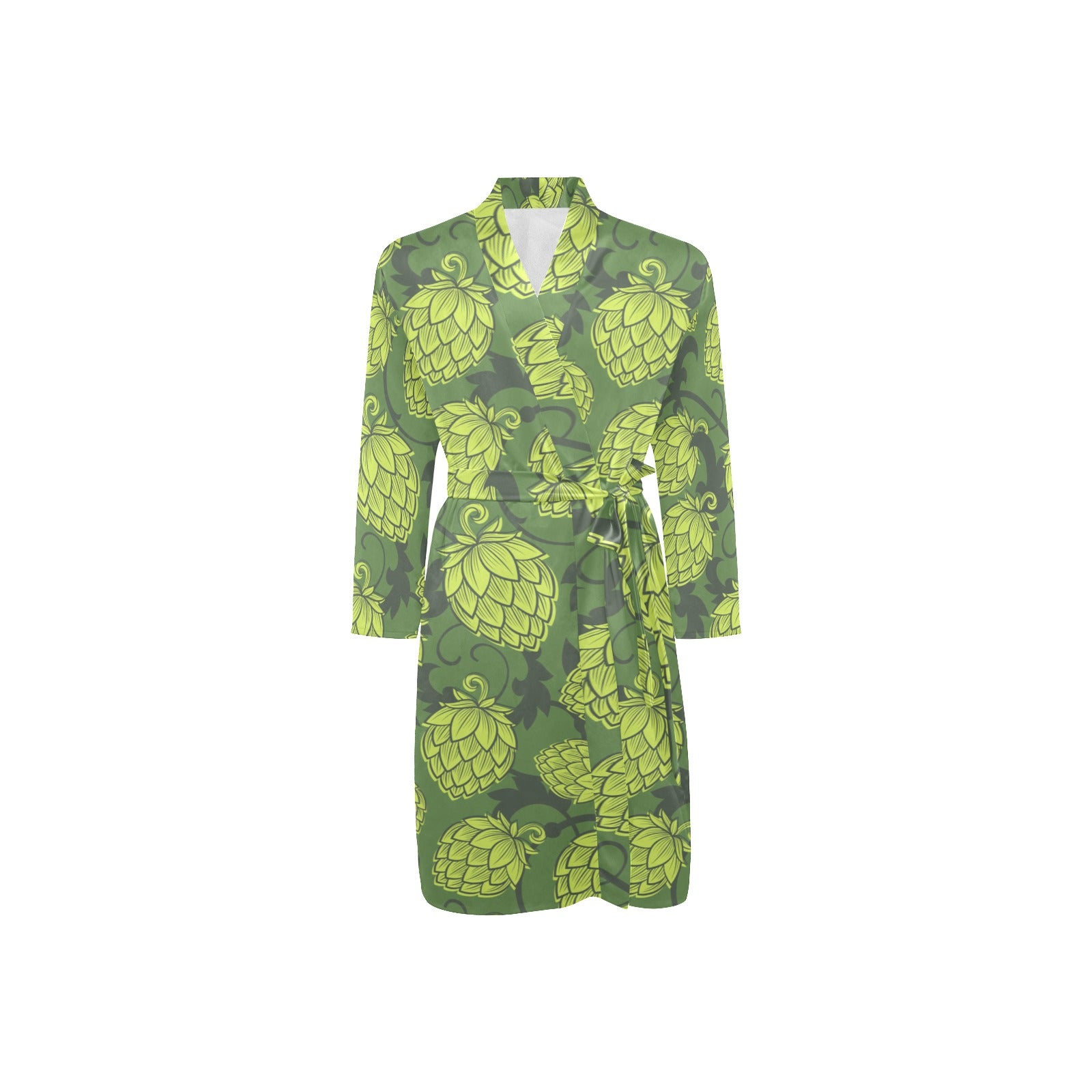 Hop pattern Hop cone background Men's Long Sleeve Belted Night Robe