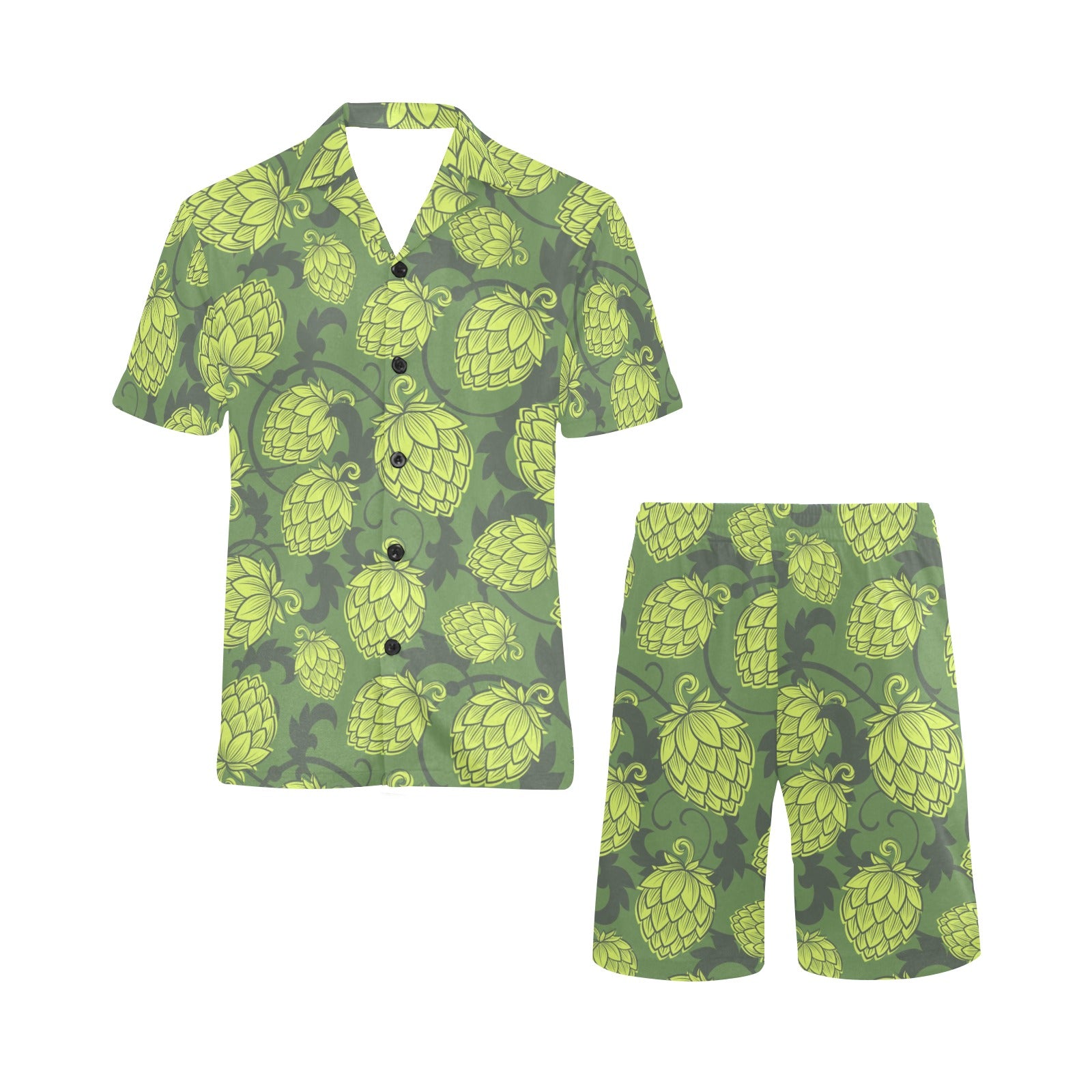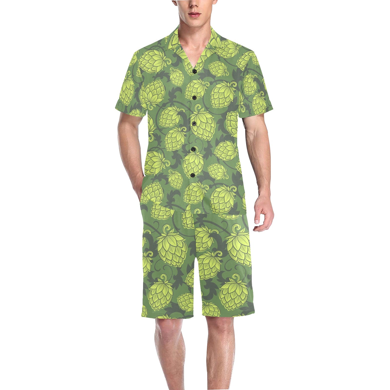 Hop pattern Hop cone background Men's V-Neck Short Pajama Set