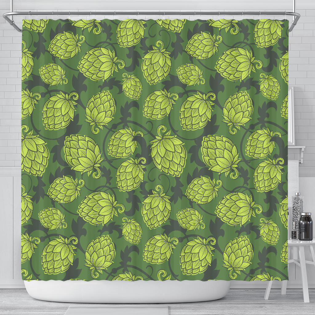 Hop Pattern Hop Cone Background Shower Curtain Fulfilled In US