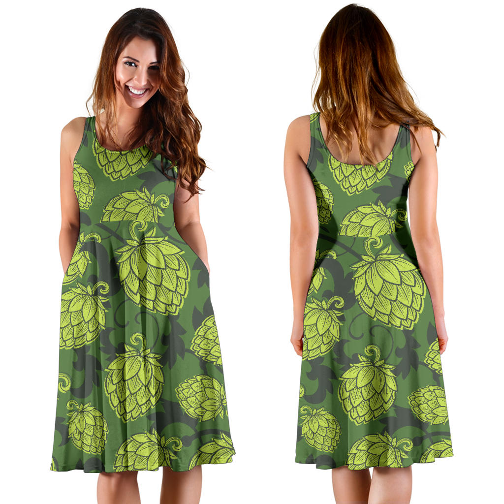 Hop patternn Hop cone background Sleeveless Midi Dress is a uniqued design and limited item. It made to order, hand printed, and sewn with love in our factory.
