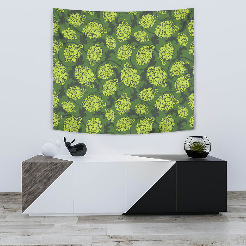 Hop pattern Hop cone background Tapestry is a uniqued design and limited item. It made to order, hand printed, and sewn with love in our factory.