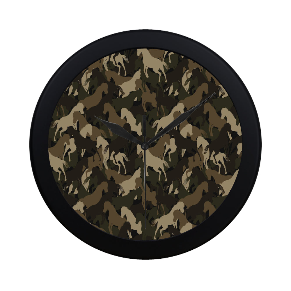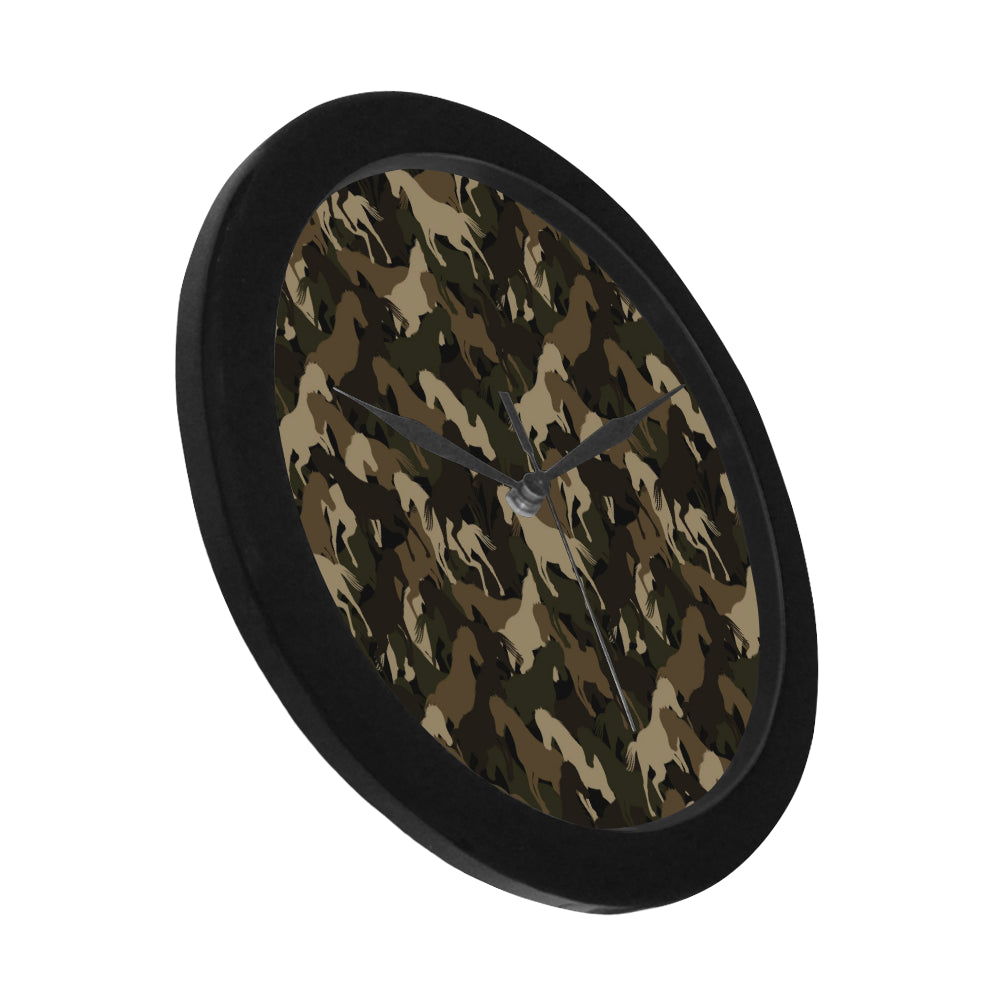 Horse Camouflage Pattern Elegant Black Wall Clock