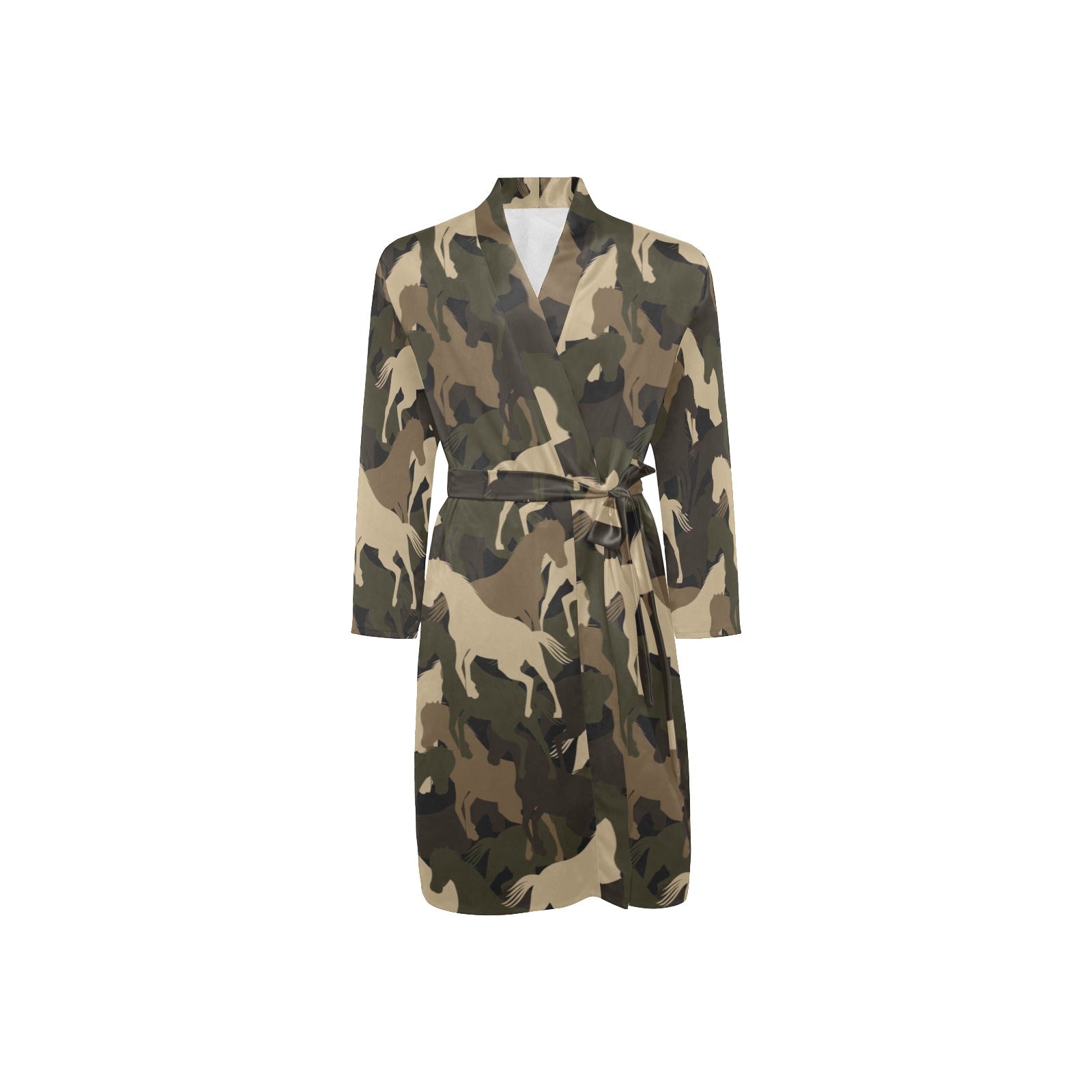 Horse Camouflage Pattern Men's Long Sleeve Belted Night Robe