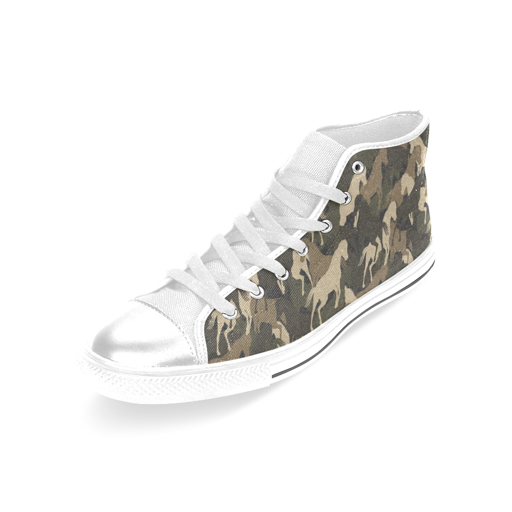 Horse Camouflage Pattern Women's High Top Canvas Shoes White