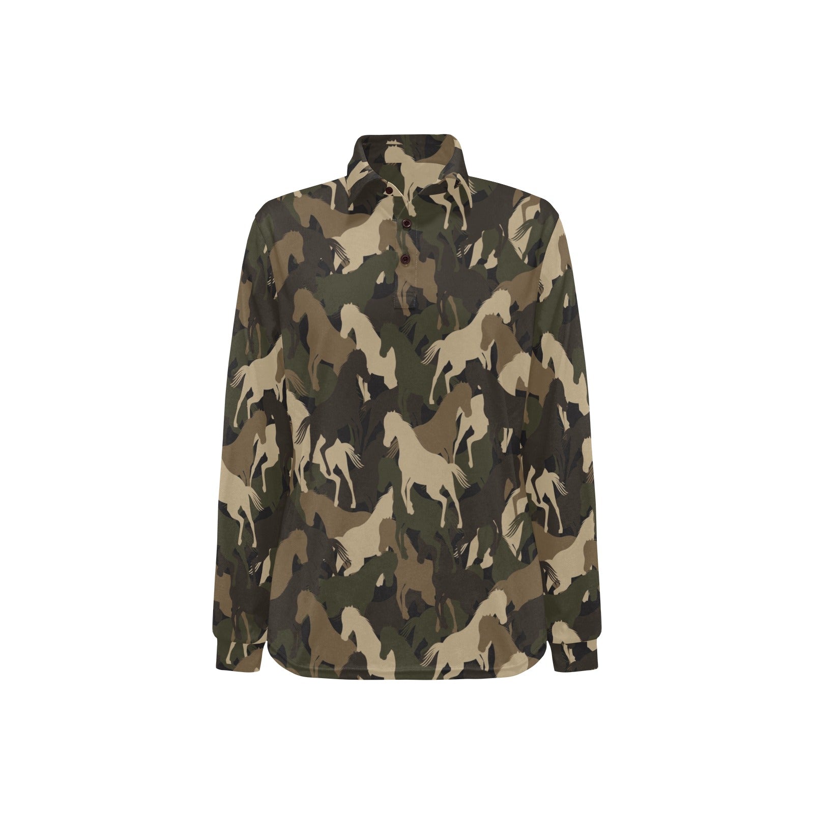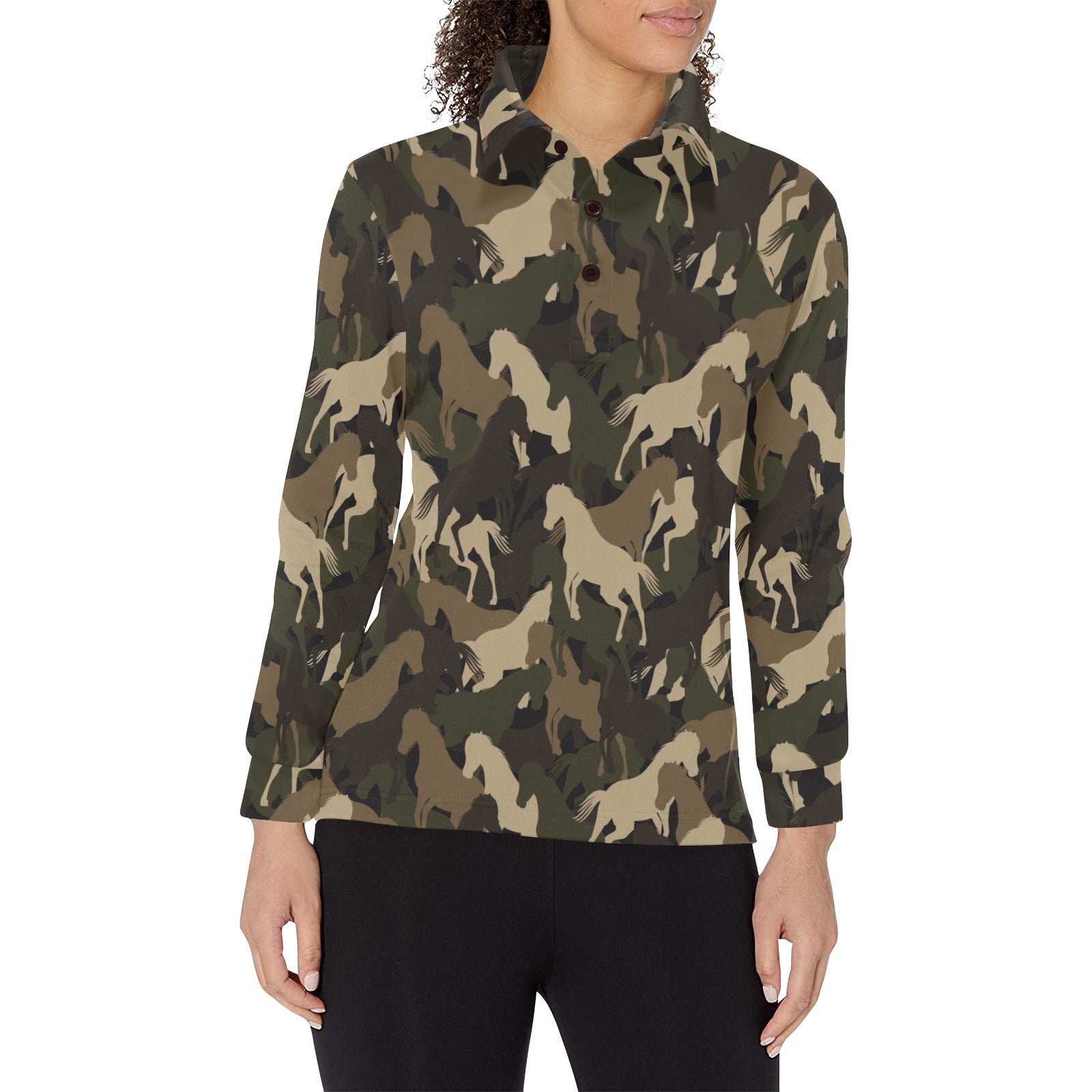Horse Camouflage Pattern Women's Long Sleeve Polo Shirt