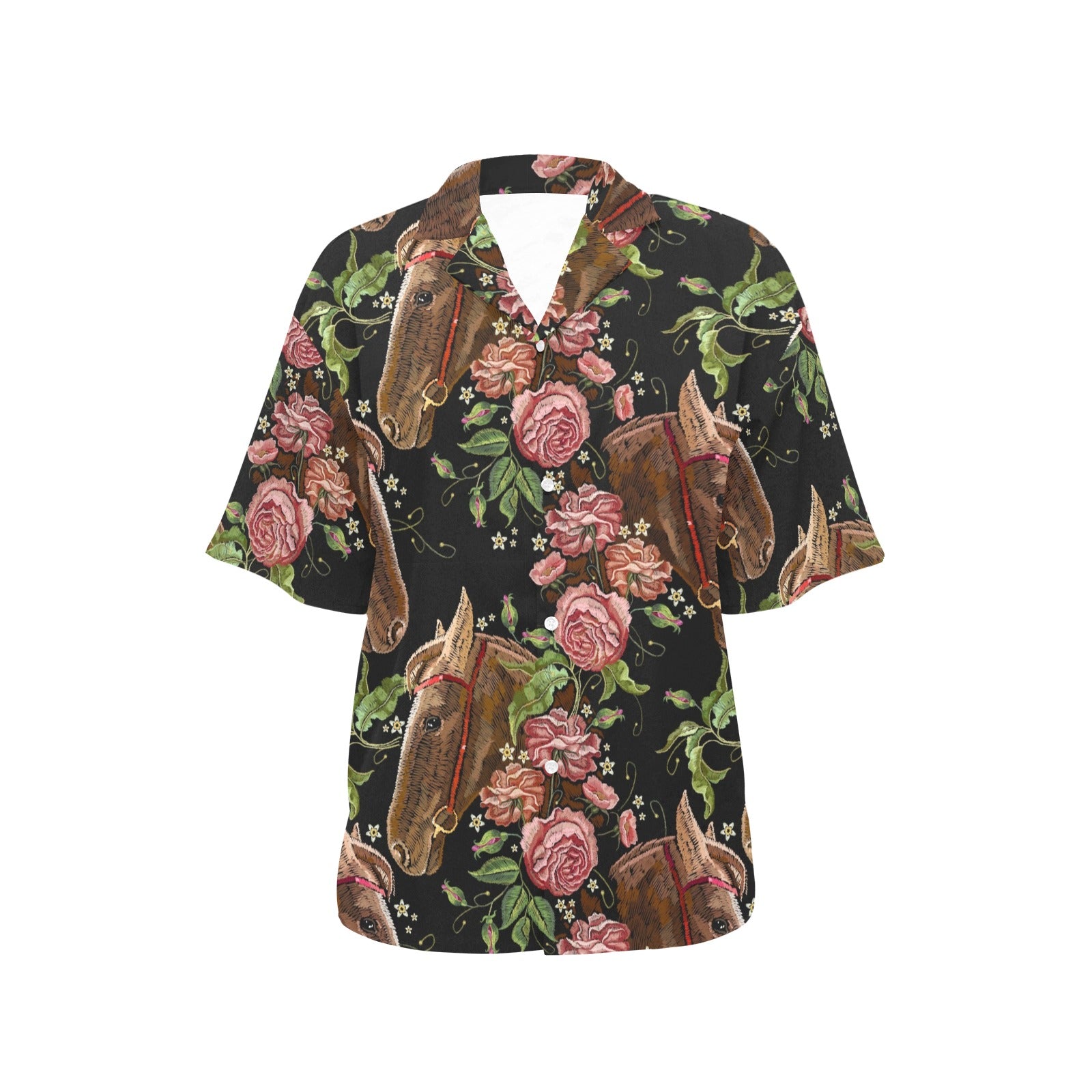 Horse head wild roses pattern Women's All Over Print Hawaiian Shirt