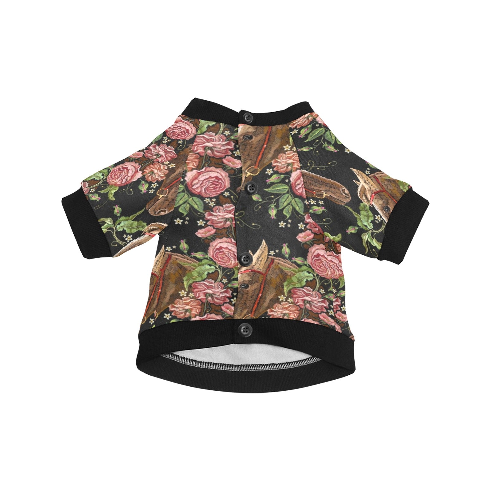 Horse head wild roses pattern All Over Print Pet Dog Round Neck Fuzzy Shirt