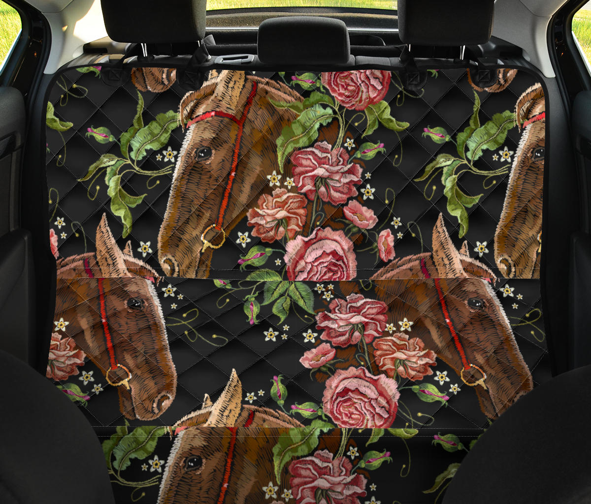 Horse Head Wild Roses Pattern Dog Car Seat Covers