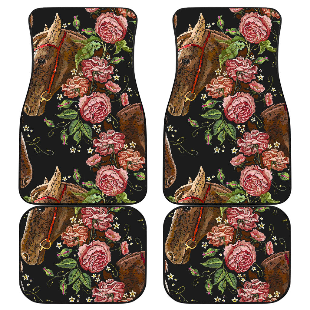 Horse Head Wild Roses Pattern Front And Back Car Mats