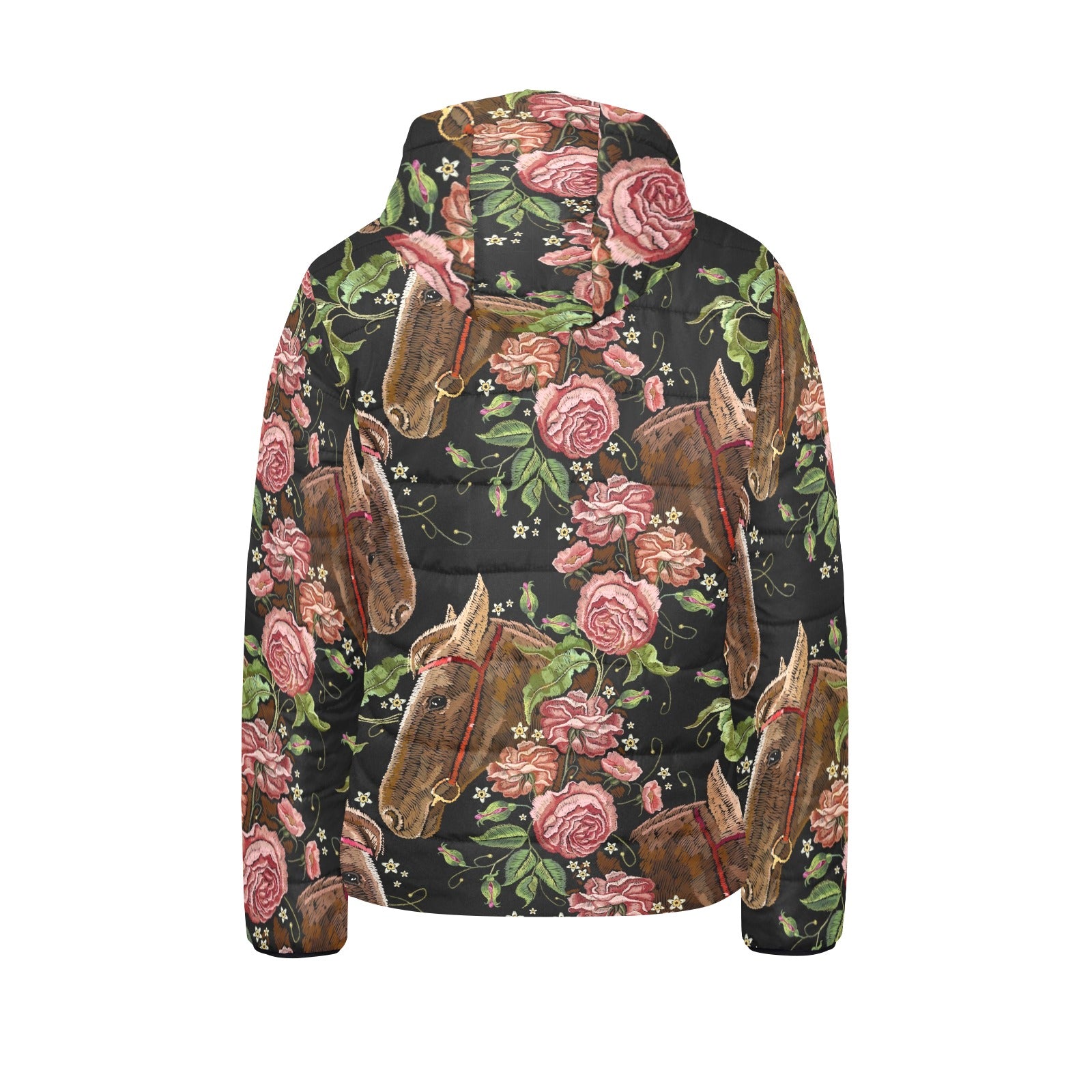 Horse head wild roses pattern Kids' Boys' Girls' Padded Hooded Jacket