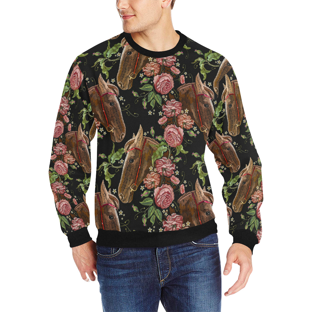 Horse head wild roses pattern Men's Crew Neck Sweatshirt is a uniqued design and limited item. It made to order, hand printed, and sewn with love in our factory.