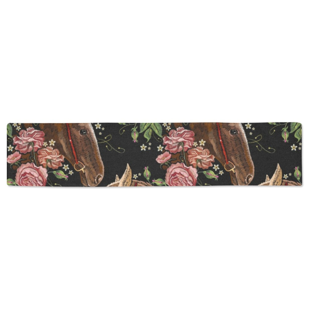 Horse head wild roses pattern Table Runner