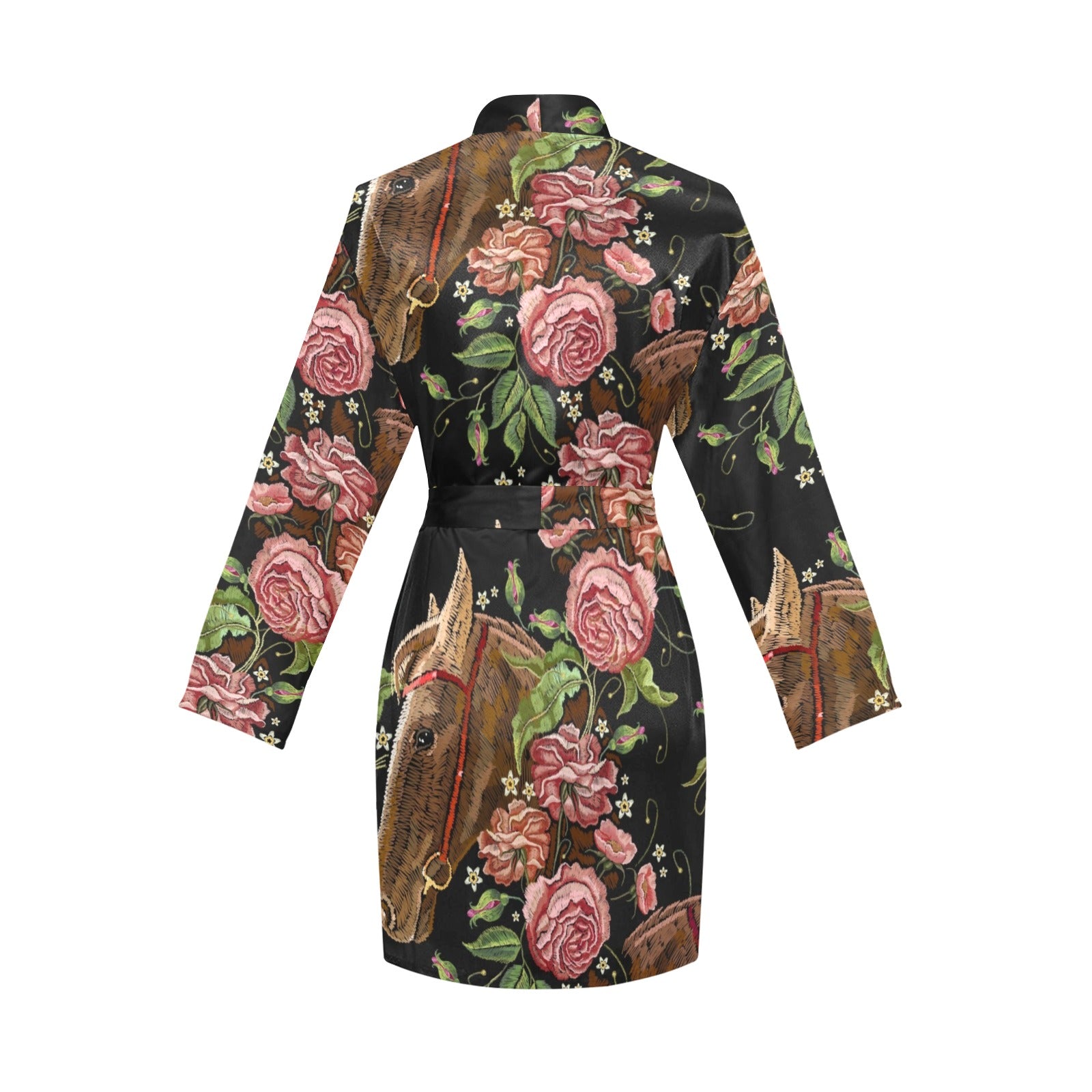 Horse head wild roses pattern Women's Long Sleeve Belted Night Robe