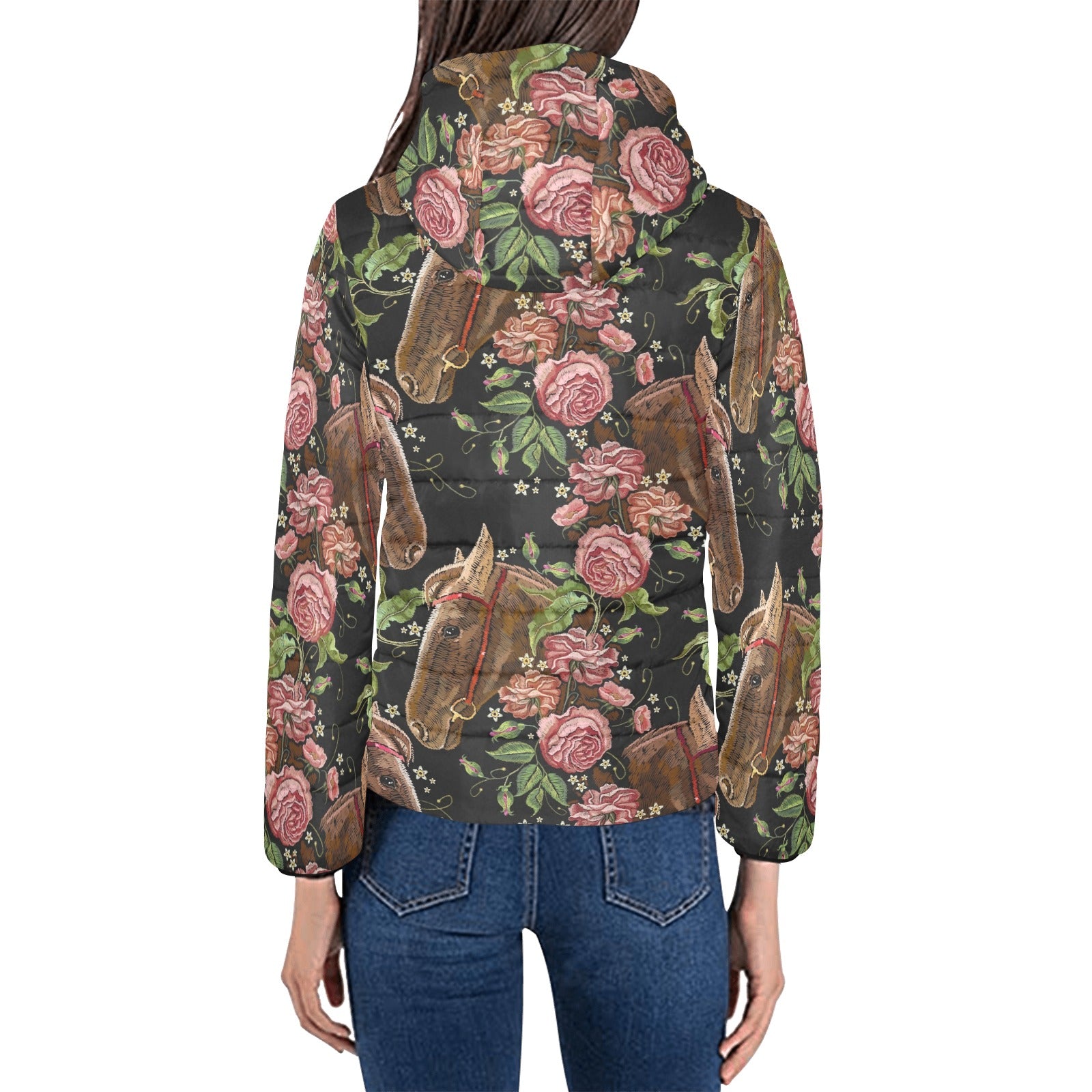 Horse head wild roses pattern Women's Padded Hooded Jacket