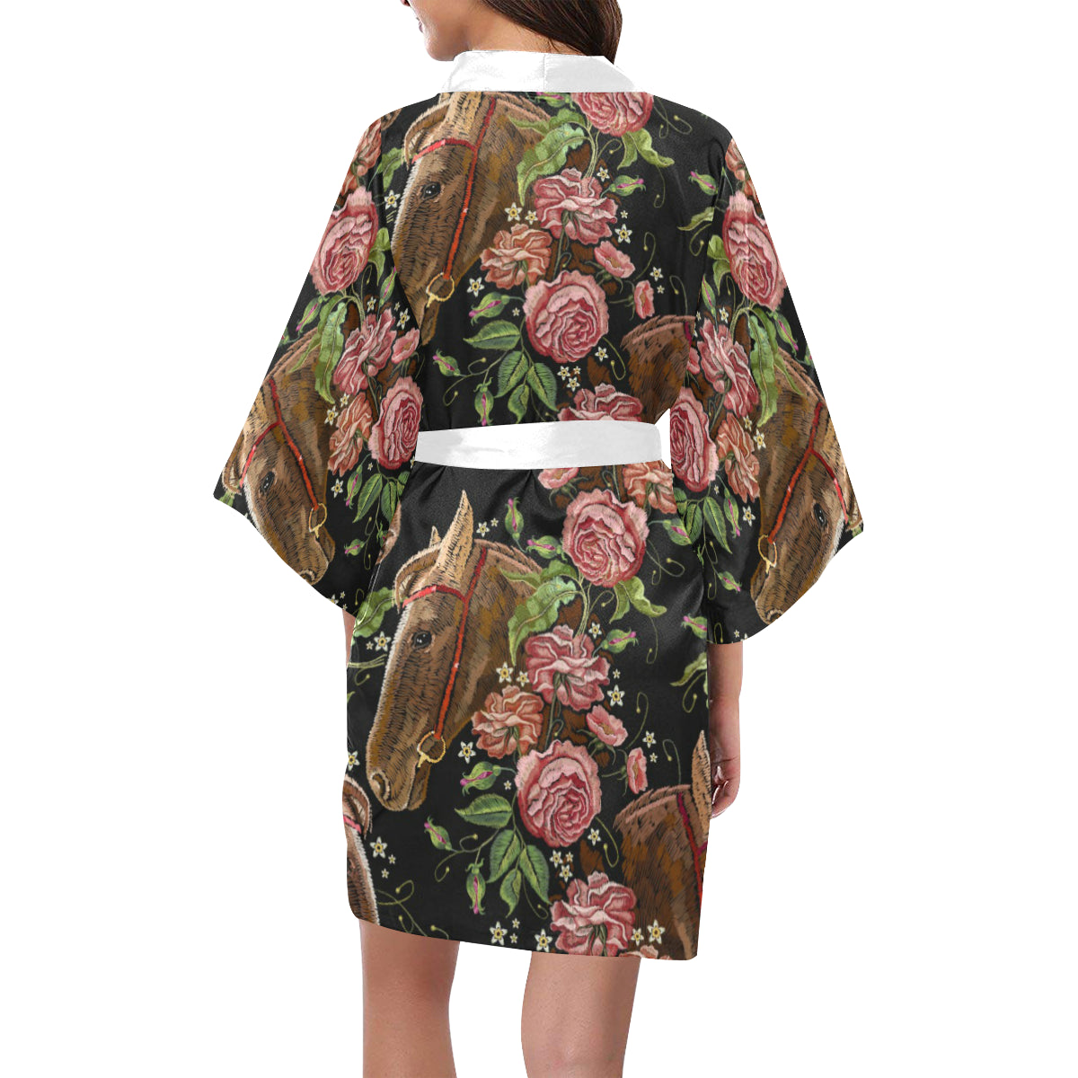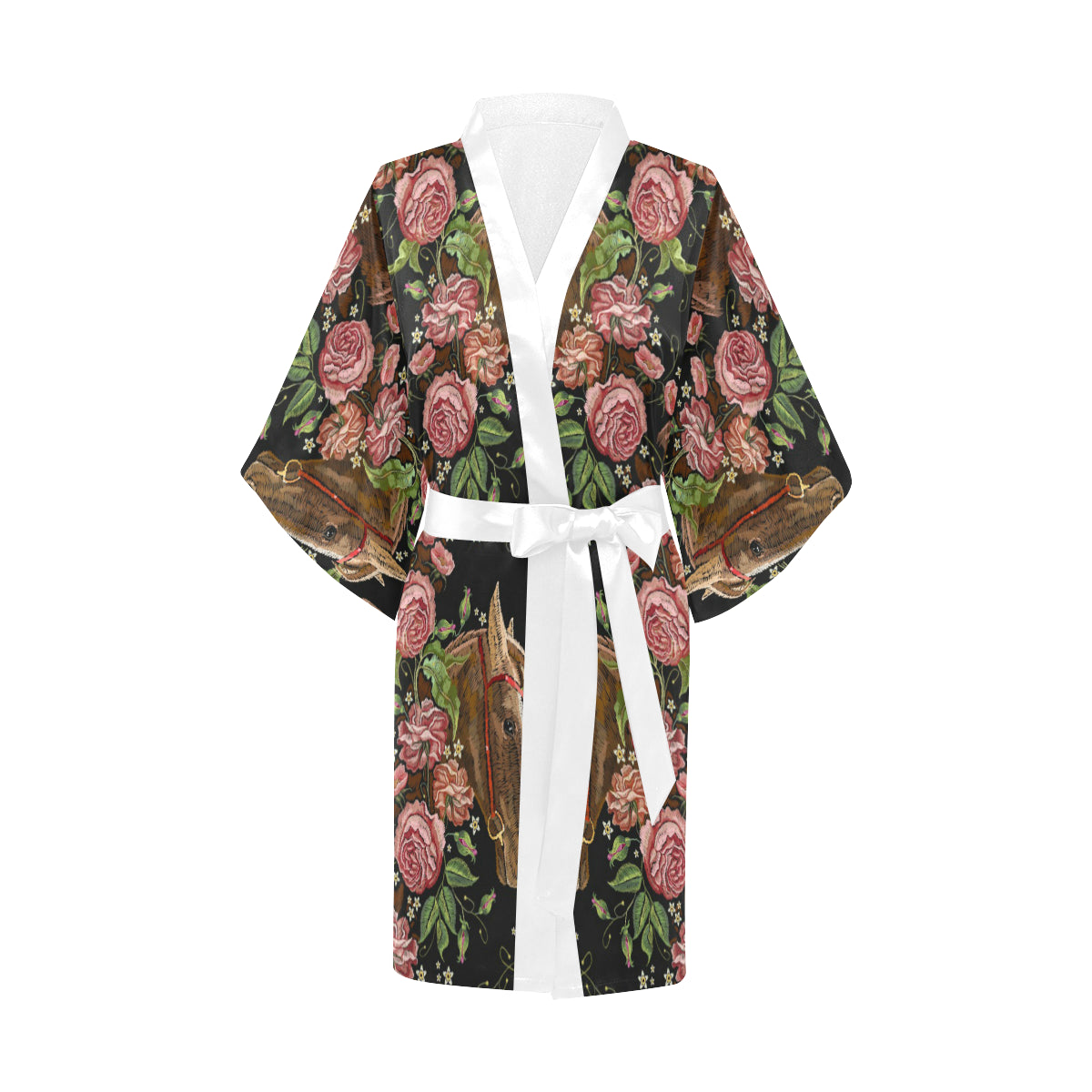 Horse head wild roses pattern Women's Short Kimono Robe is a uniqued design and limited item. It made to order, hand printed, and sewn with love in our factory.