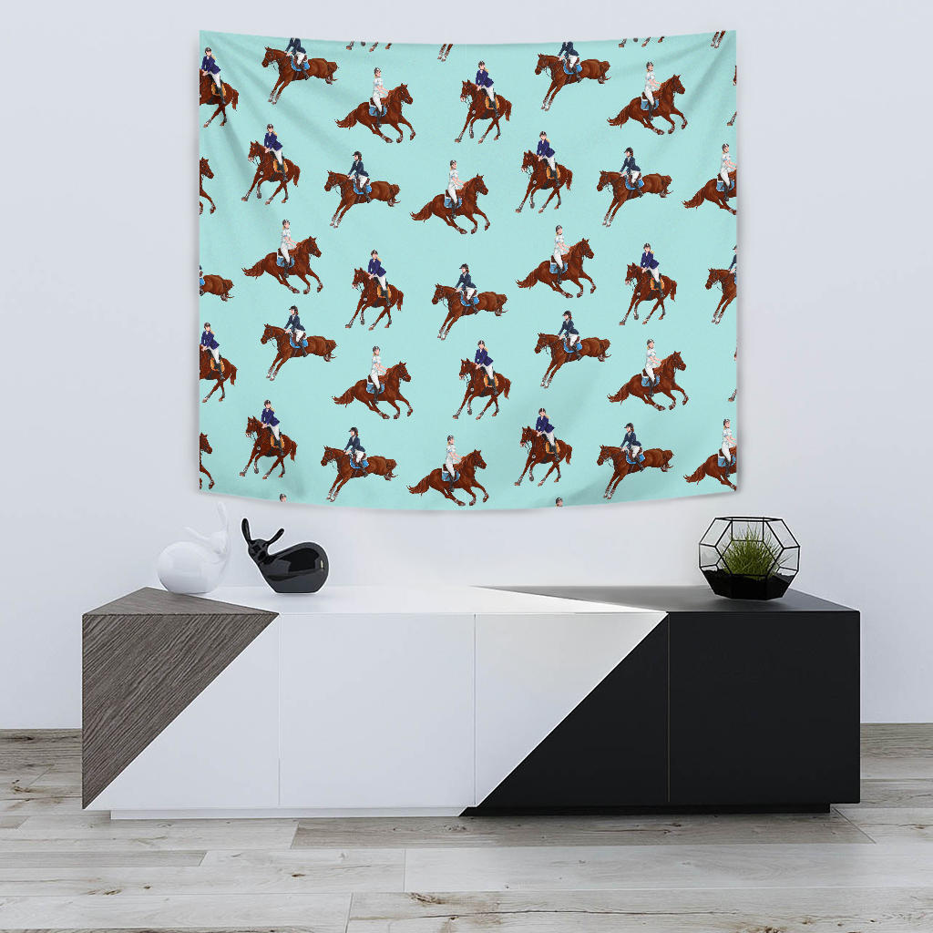 Horses running horses rider pattern Tapestry is a uniqued design and limited item. It made to order, hand printed, and sewn with love in our factory.