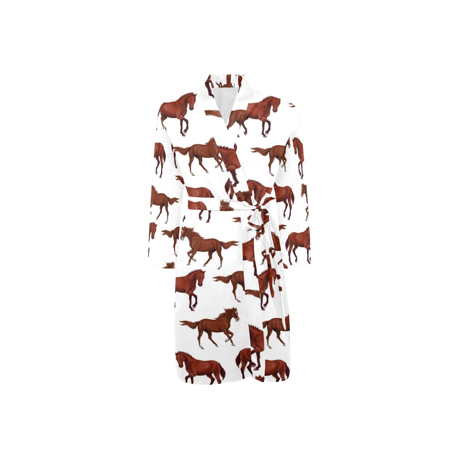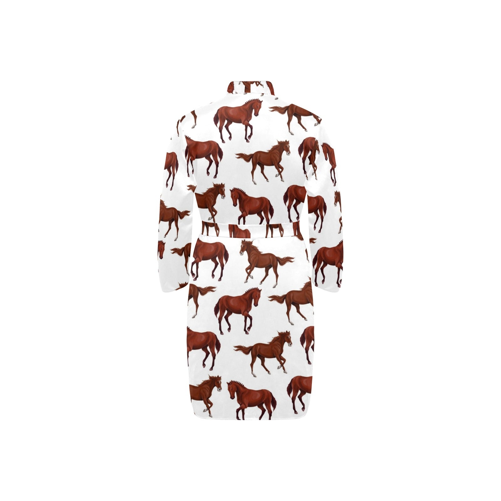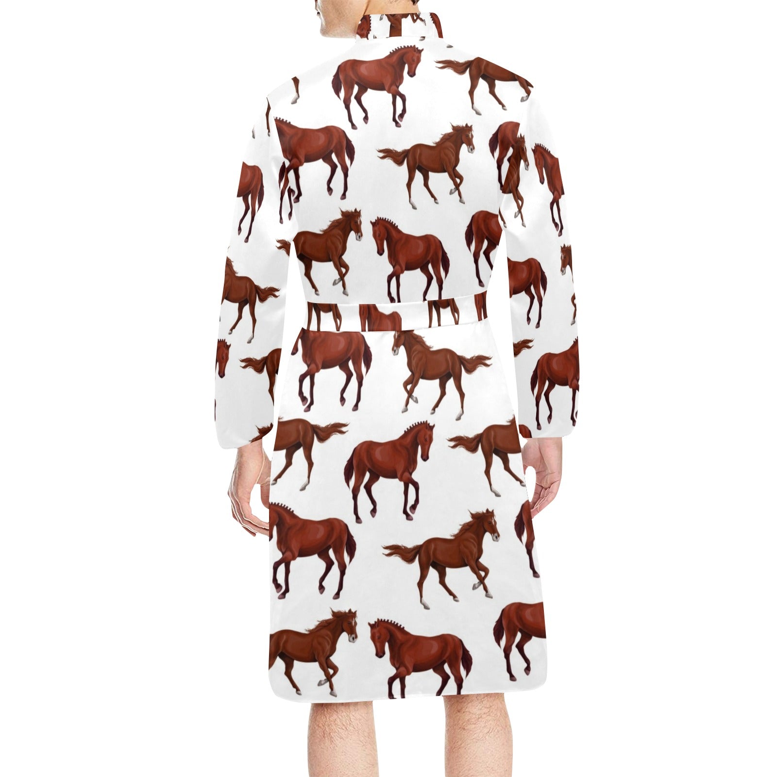 Horses running pattern background Men's Long Sleeve Belted Night Robe