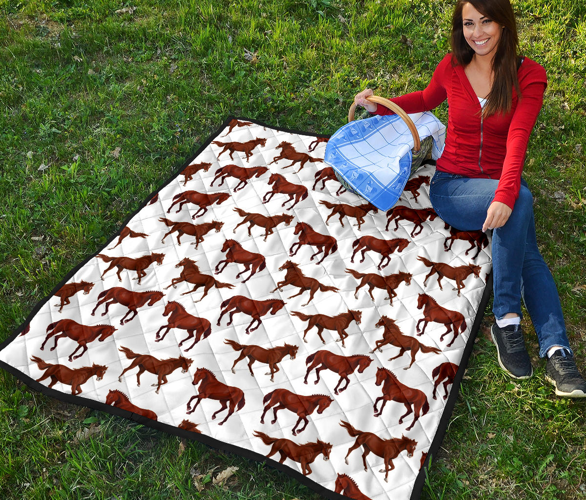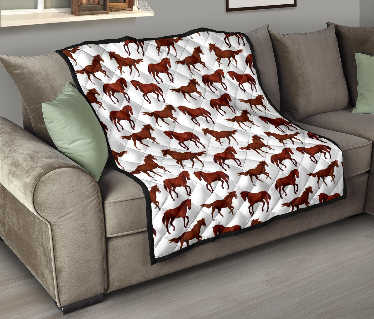 Horses Running Pattern Background Premium Quilt is a uniqued design and limited item. It made to order, hand printed, and sewn with love in our factory.