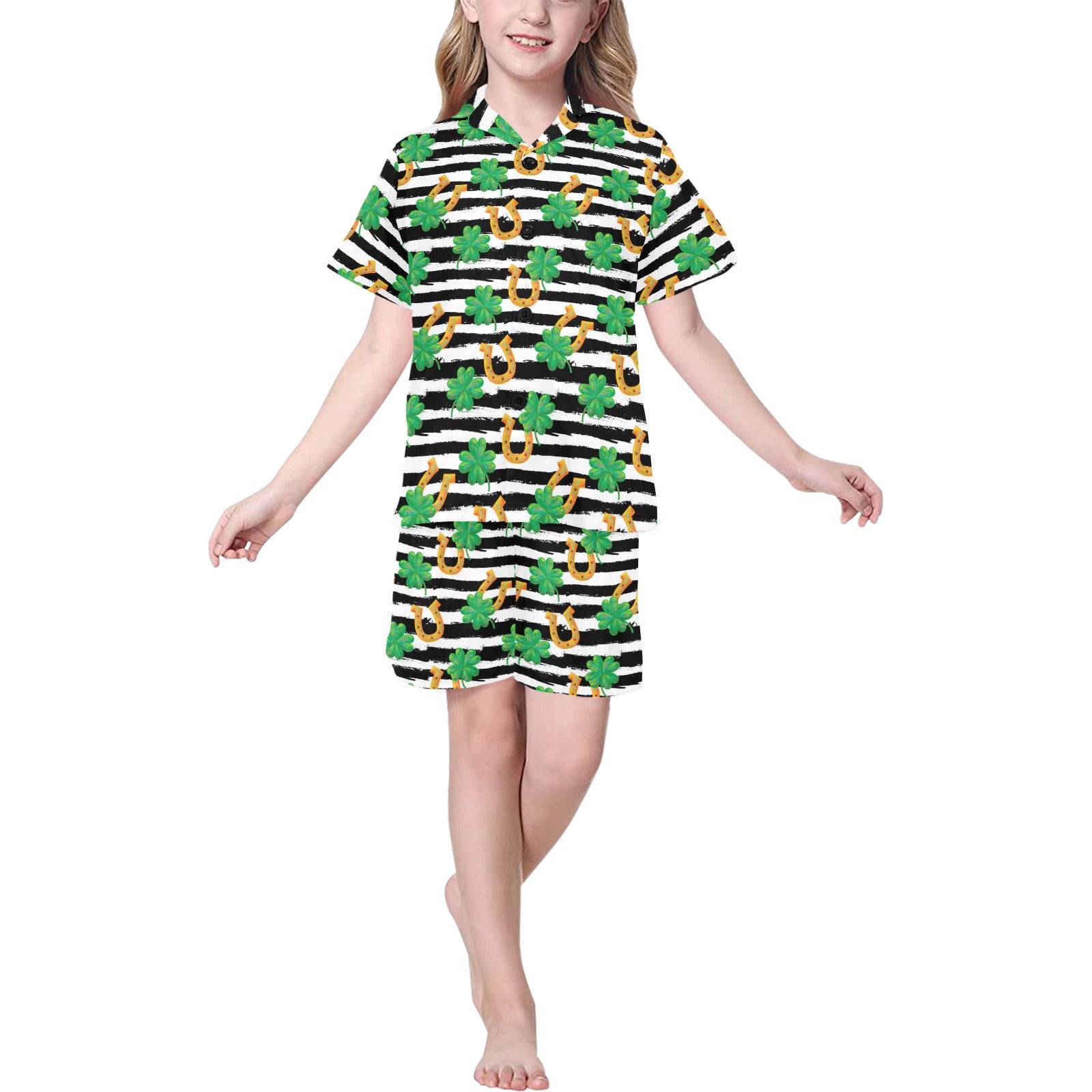 Kids' V-Neck Short Pajama Sets are uniqued design and limited item. It made to order, hand printed, and sewn with love in our factory.