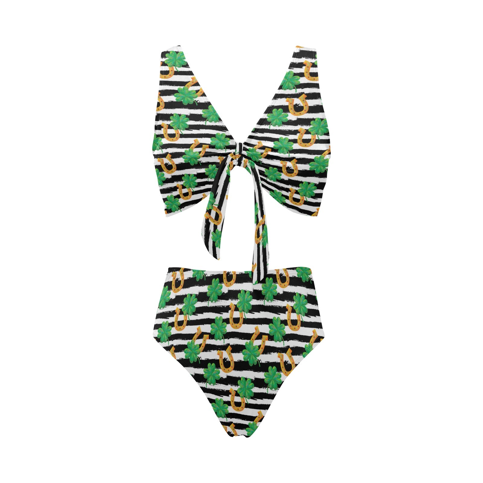 Horseshoes Pattern Print Design 01 Chest Bowknot High Waisted Bikini Swimsuit